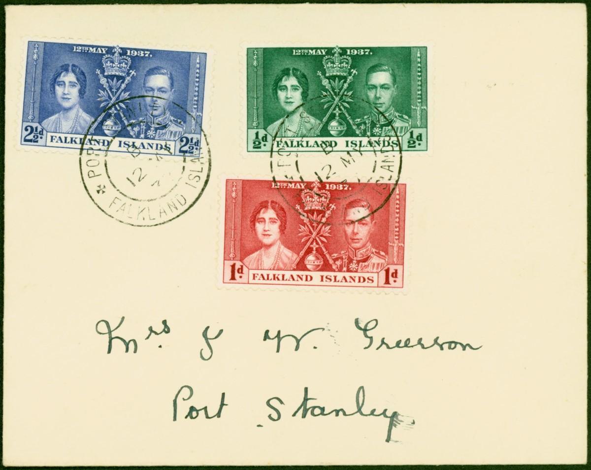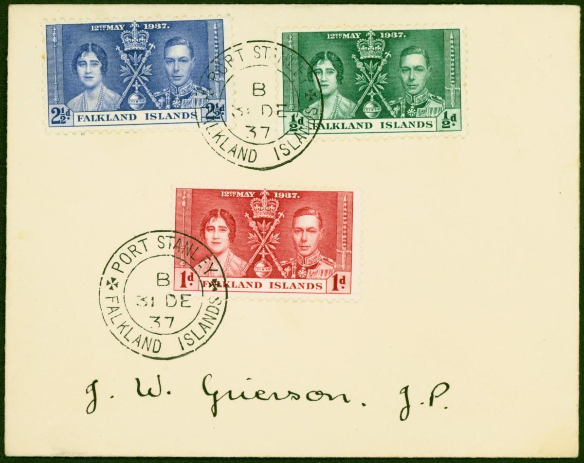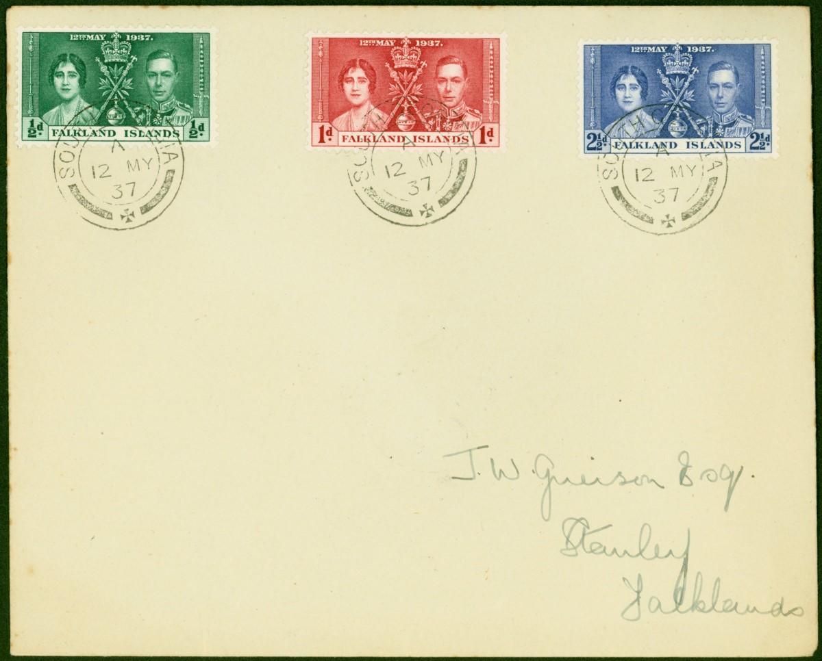 Falkland Islands 1937 Coronation Set of 3 on 1st Day Cover to Port Stanley Fine & Attractive