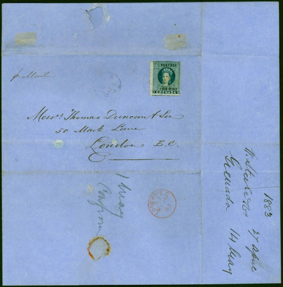Grenada 1883 Cover to London Bearing SG23 Fine Attractive & Scarce