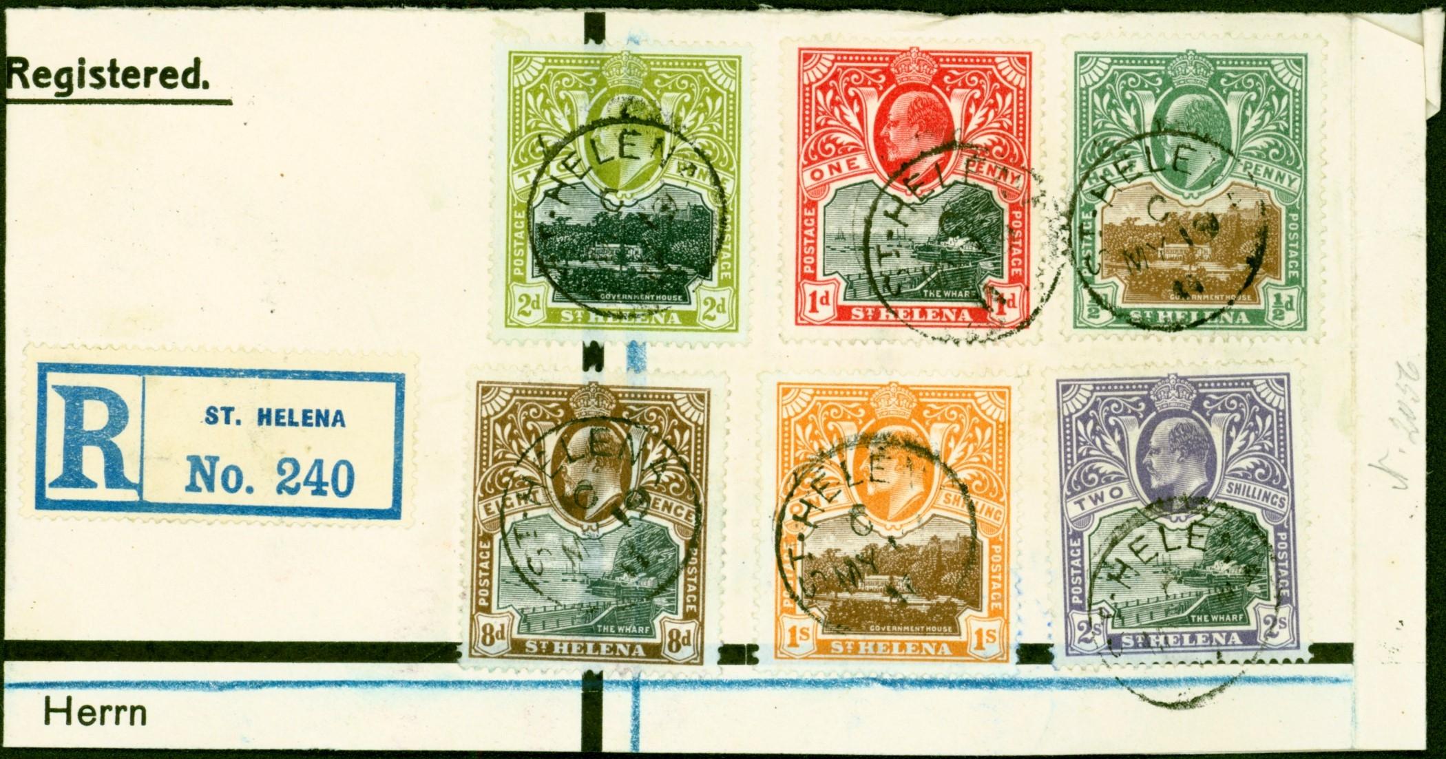 St Helena 1903 Set of 6 SG55-60 on Part Reg Cover/Large Piece to Germany