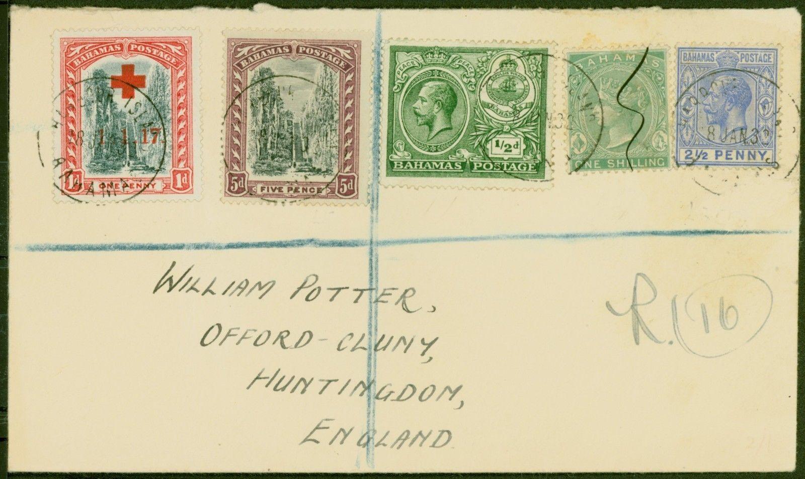 Bahamas 1932 Combination Registered Cover to Huntingdon England Bearing SG90 SG78 SG106