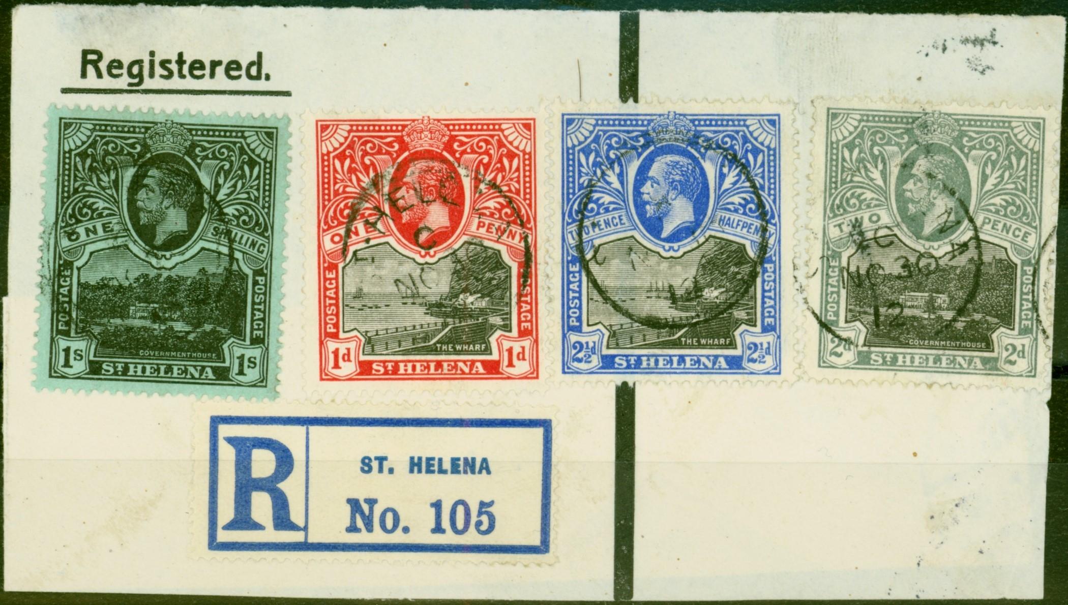 St Helena 1912 SG72, 78, 80 & 84 on Part Reg Cover/Large Piece to Germany