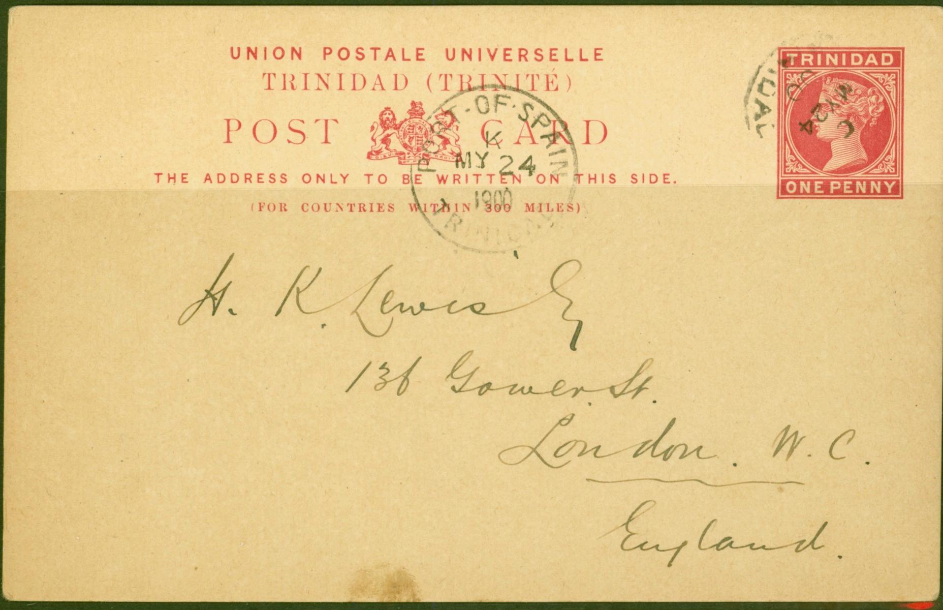 Trinidad 1900 1d Postcard to London Fine & Attractive