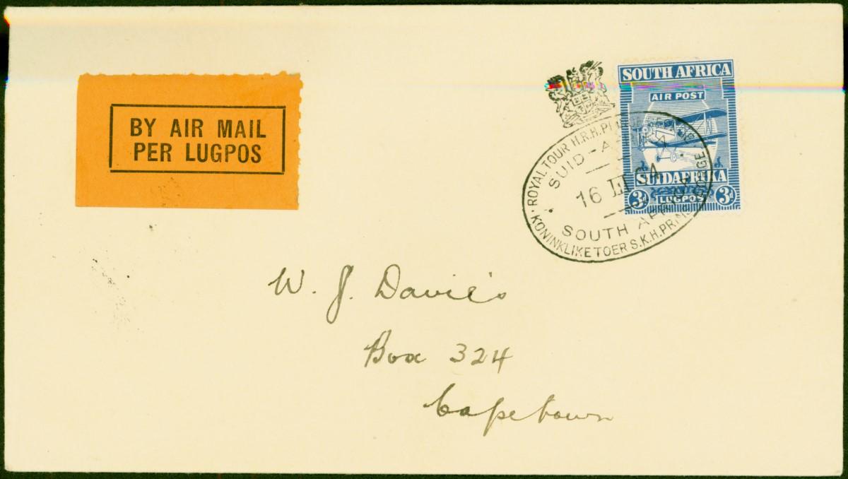 South Africa 1934 Prince George Royal Tour Reg Cover to Capetown V.F & Attractive