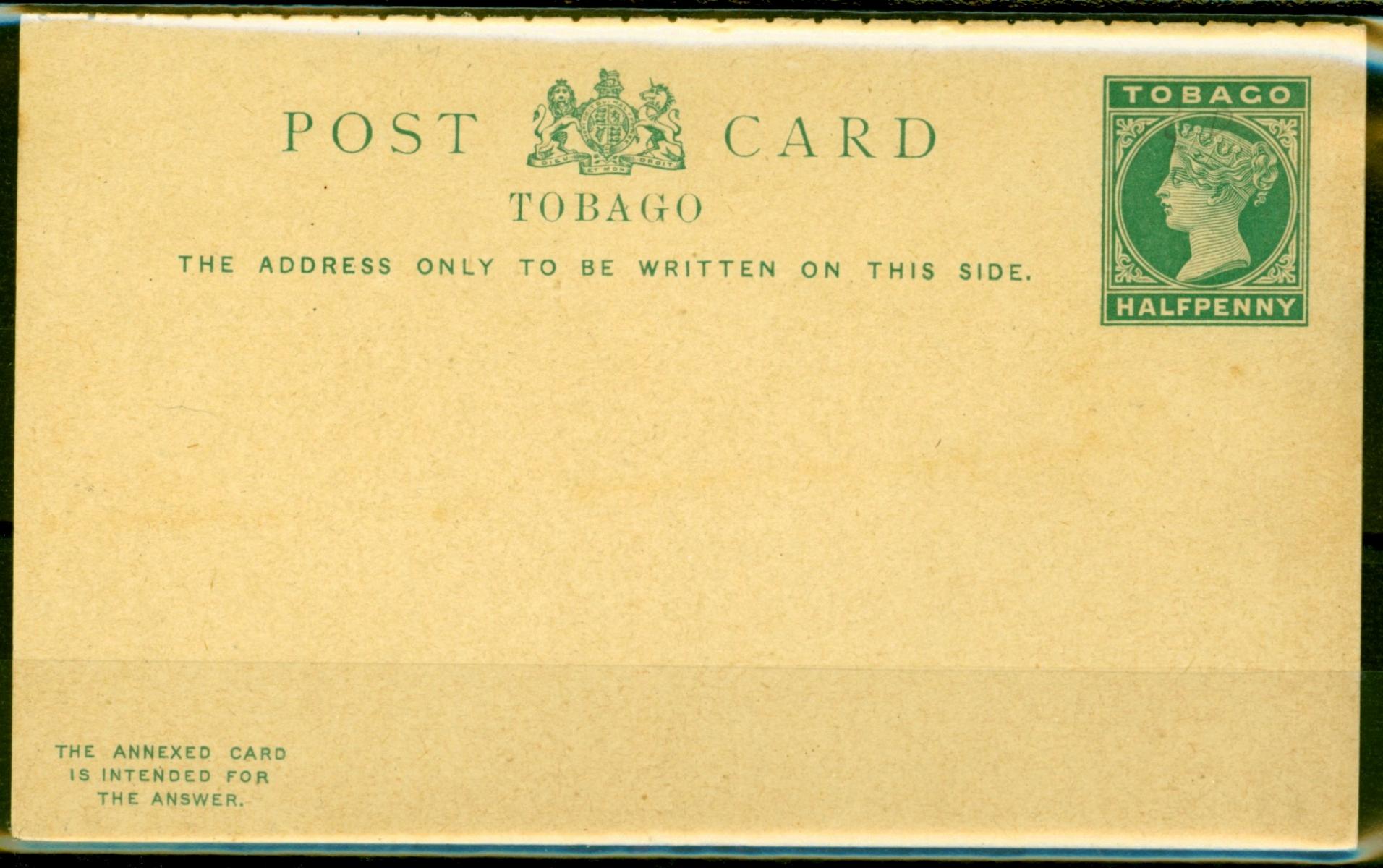 Tobago 1884 1/2d & 1/2d Postal Reply Postcard Fine & Fresh