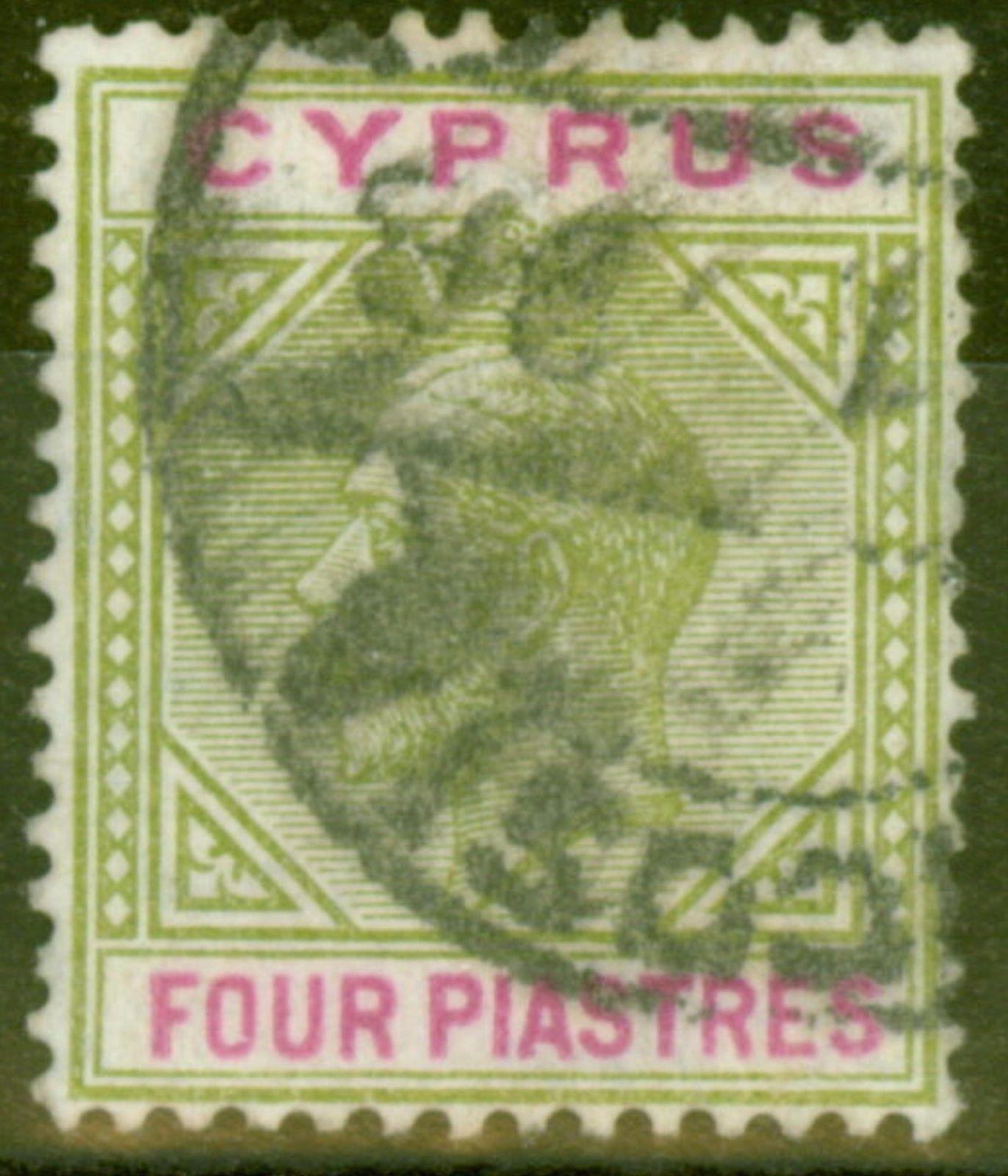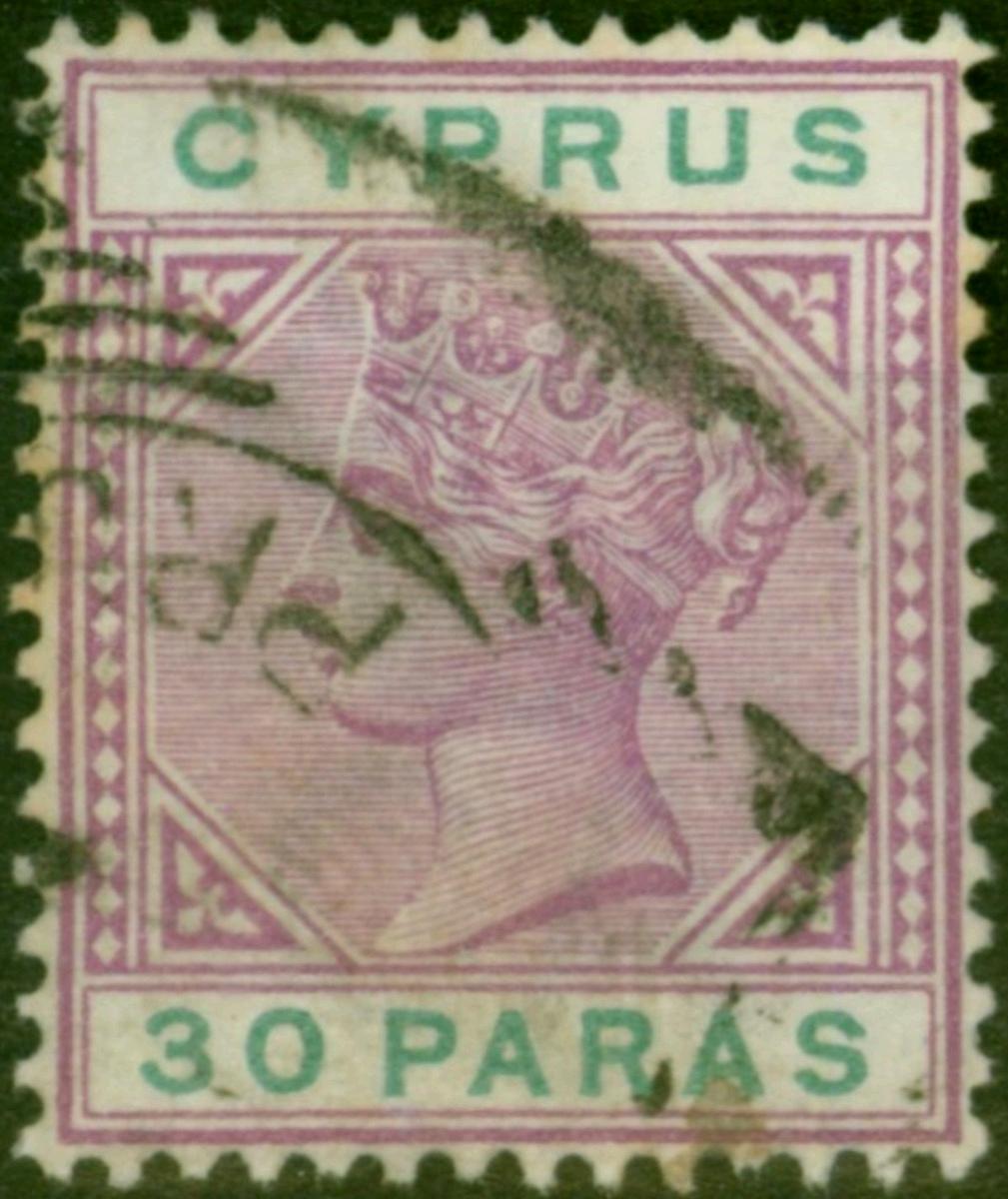 Cyprus 1896 30pa Bright Mauve & Green SG41a 'Damaged US' Fine Used