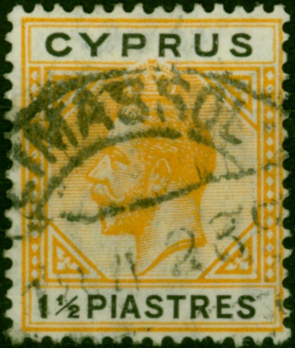 Cyprus 1922 1 1/2pi Yellow & Black SG91 Fine Used (3)