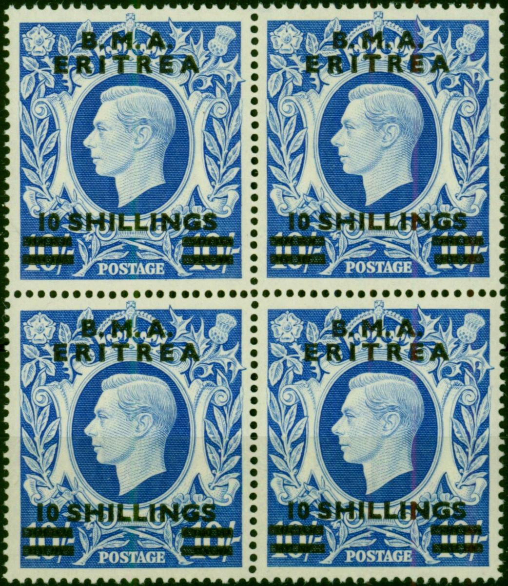 Eritrea 1948 10s on 10s Ultramarine SGE12 Superb MNH Block of 4