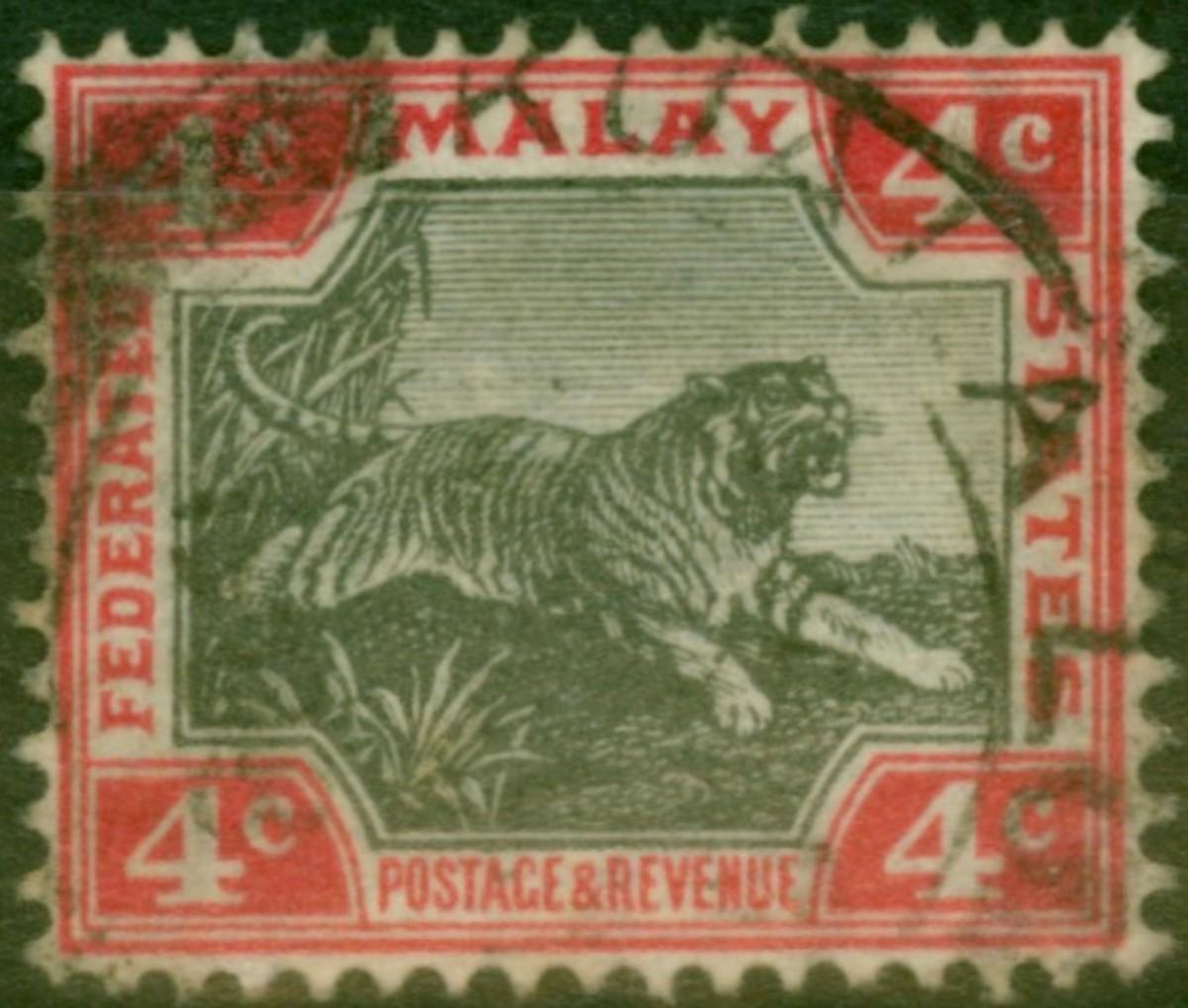 Fed of Malay States 1904 4c Grey & Scarlet SG36 Fine Used
