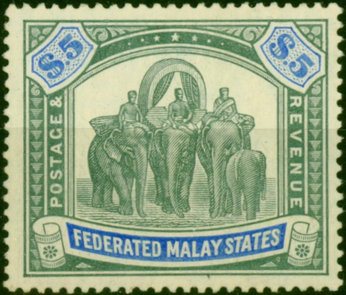 Fed of Malay States 1908 $5 Green & Blue SG50 V.F & Fresh LMM
