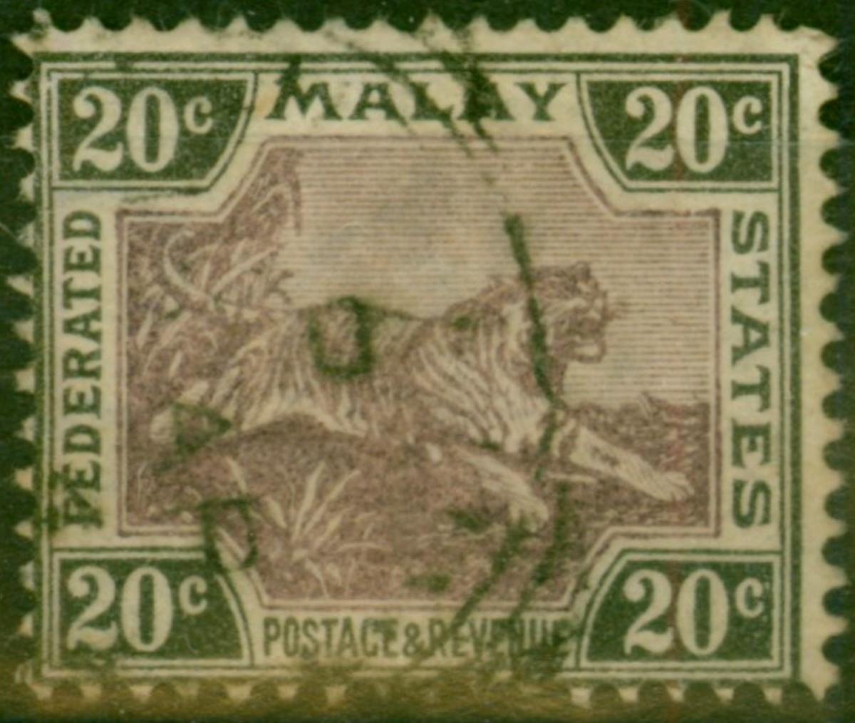Fed of Malay States 1900 20c Mauve & Black SG21 Good Used