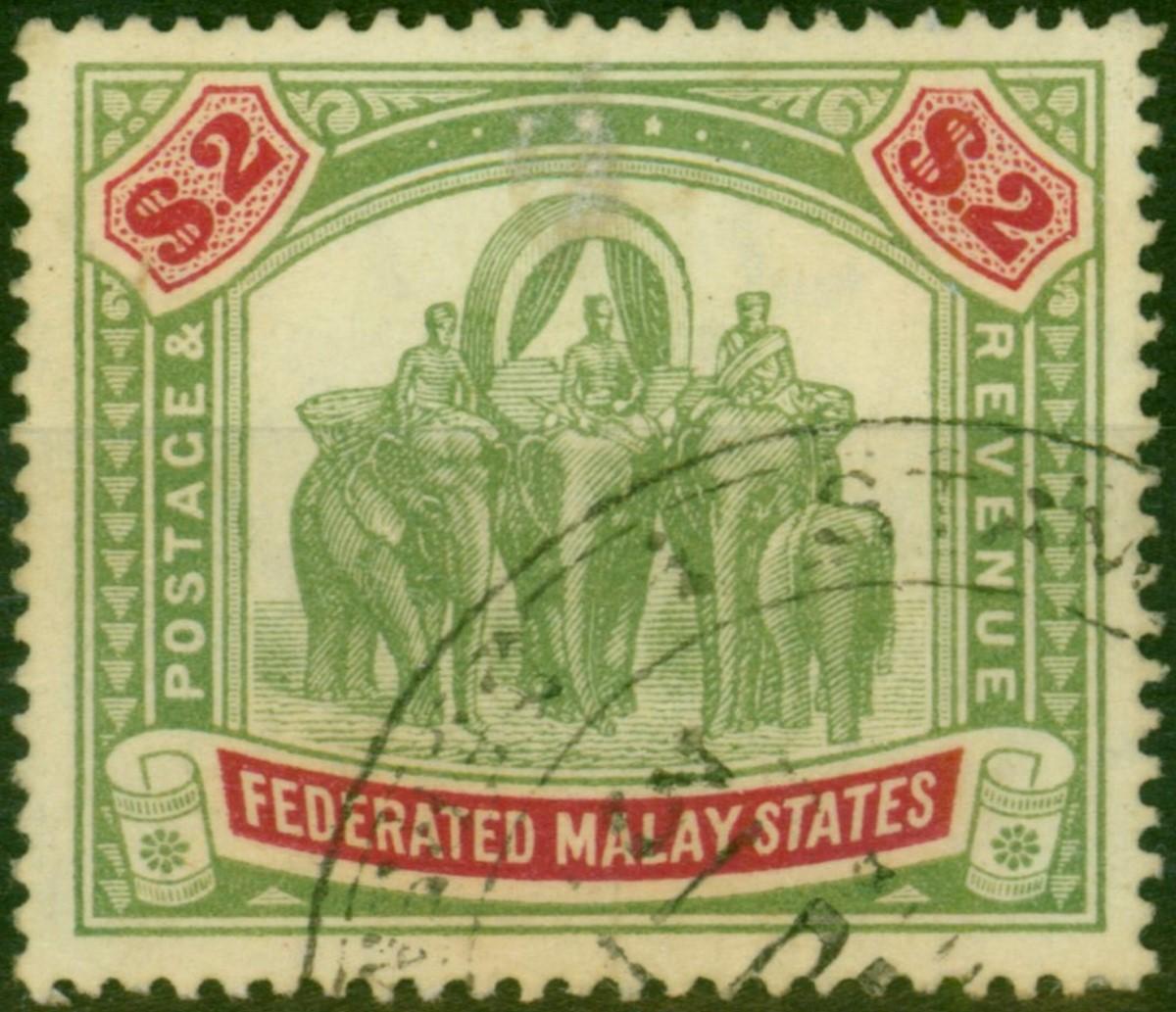 Fed Malay States 1907 $2 Green & Carmine SG49 V.F.U
