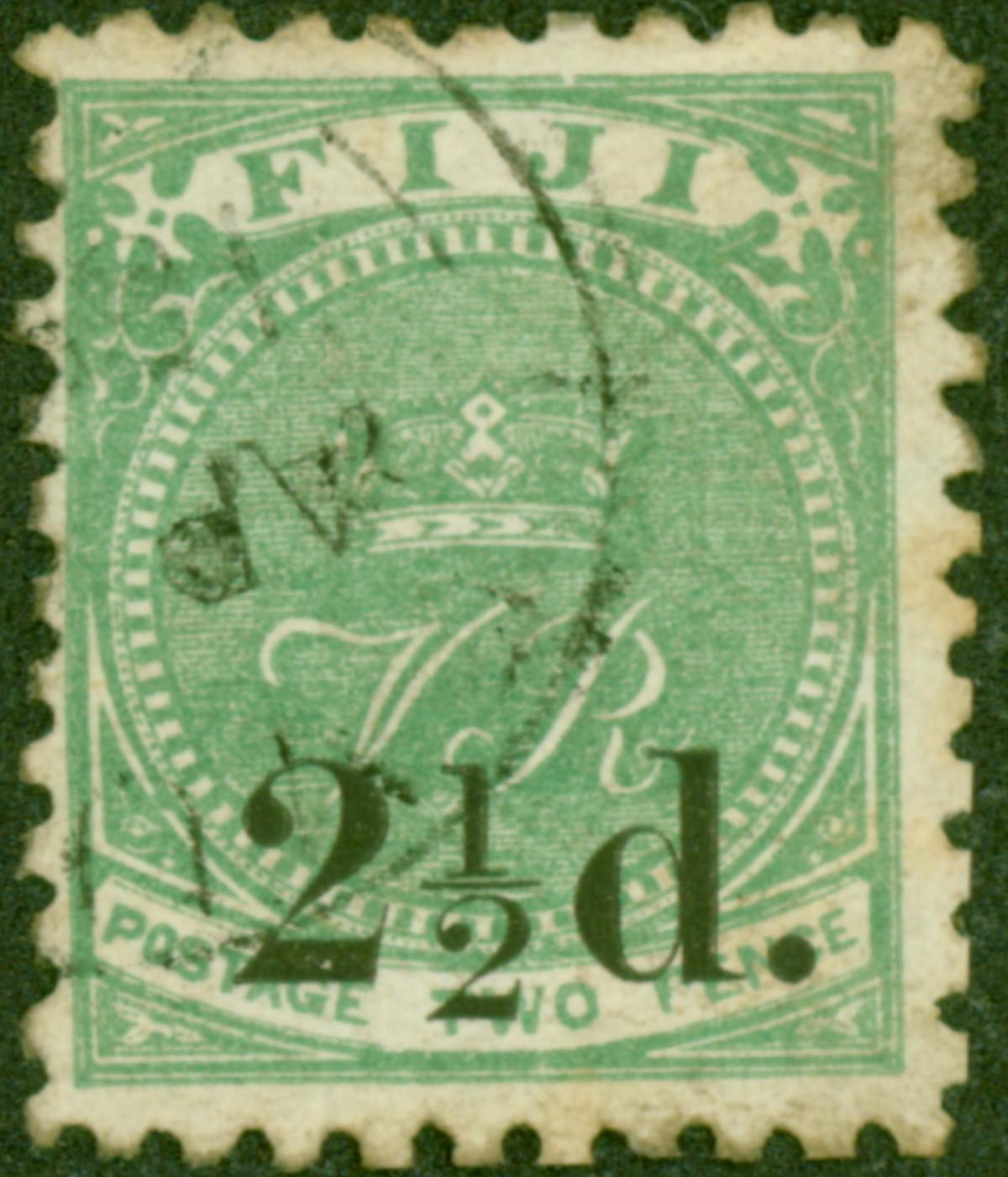 Fiji 1890 2 1/2d on 2d Green SG70 Fine Used