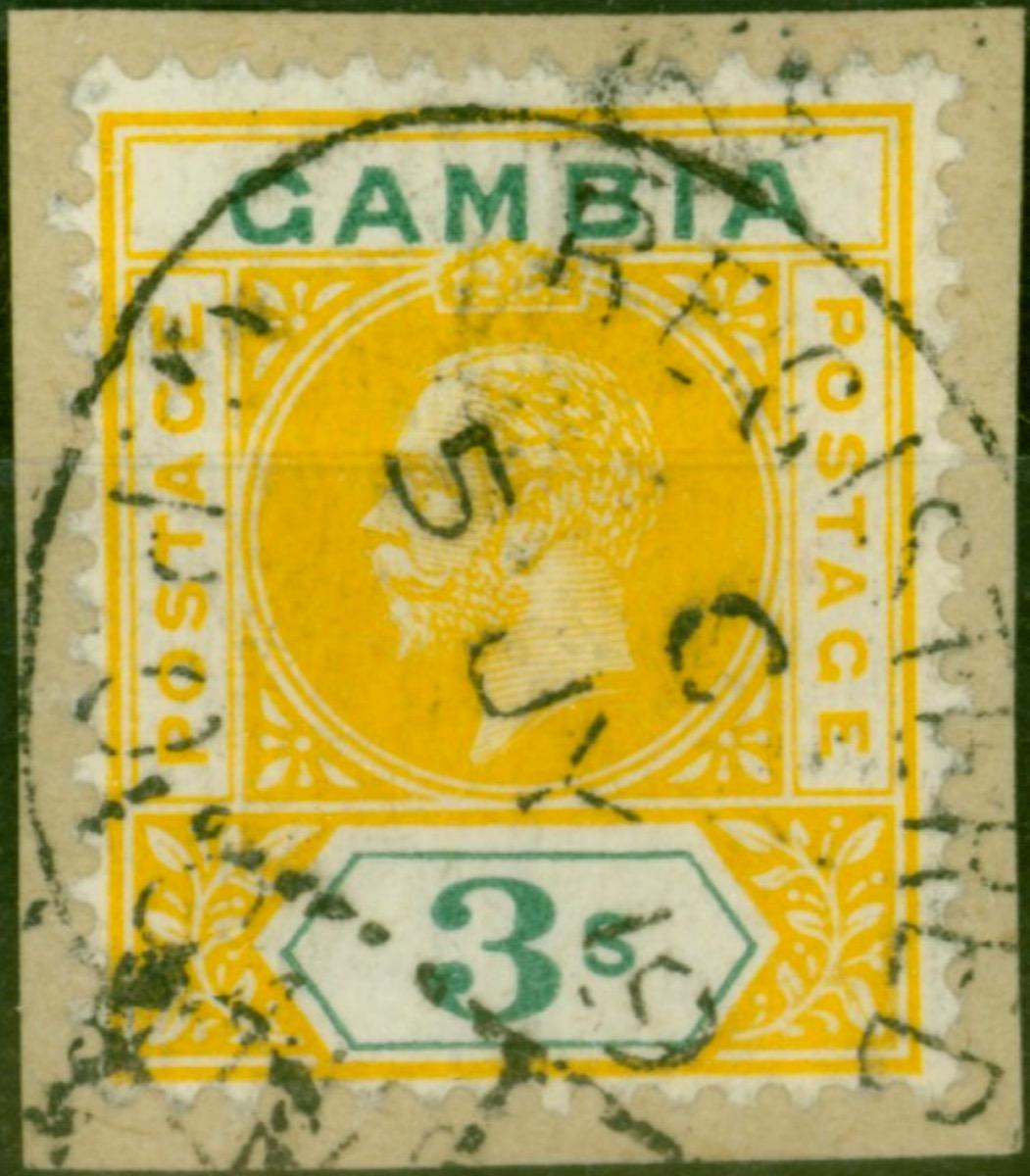 Gambia 1912 3s Yellow & Green SG101 Fine Used on Piece