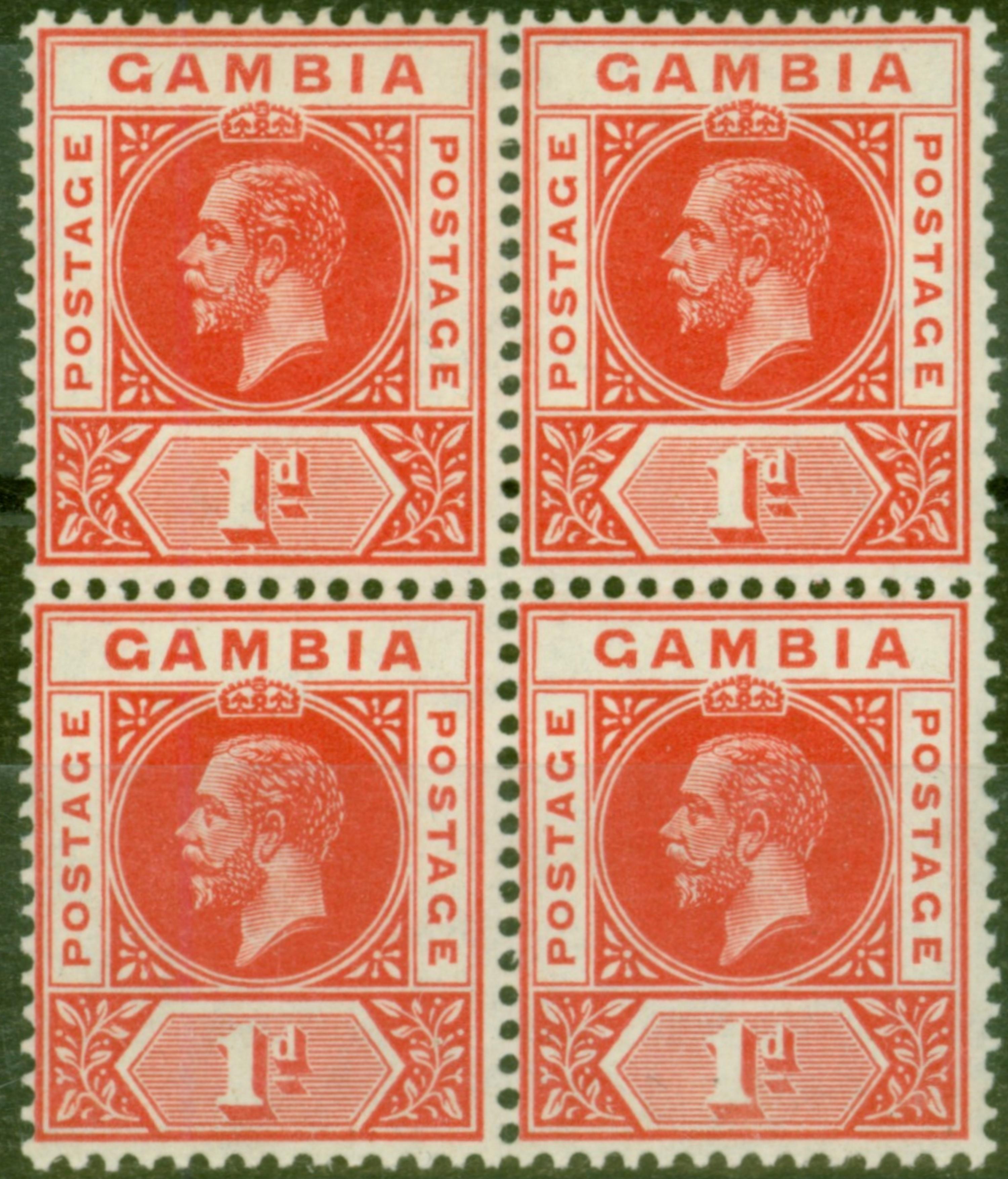 Gambia 1912 1d Red SG87var Break in Value Tablet in a V.F LMM & MNH Block of 4