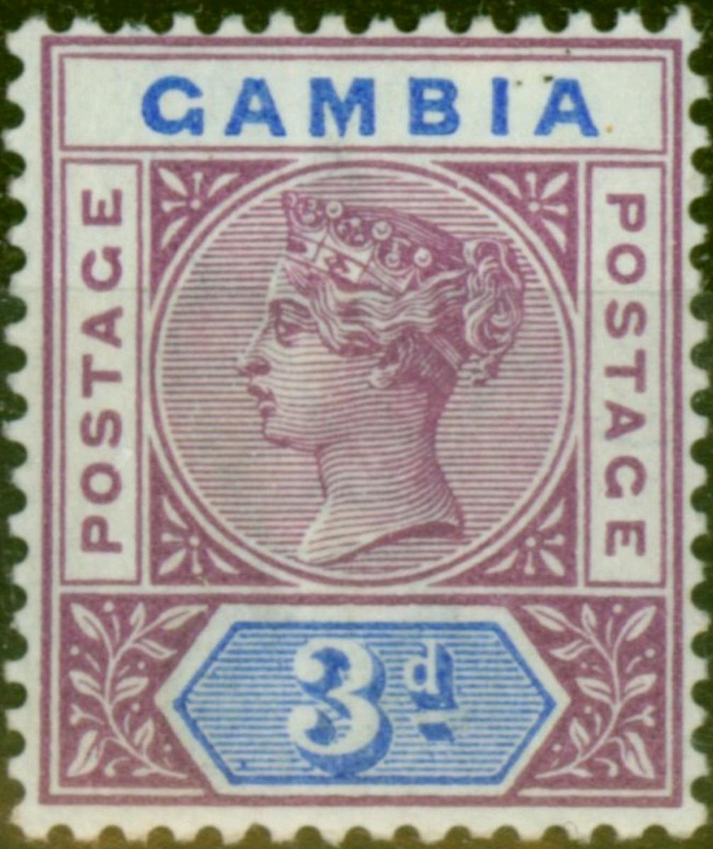 Gambia 1898 3d Reddish Purple & Blue SG41 Fine MM (2)
