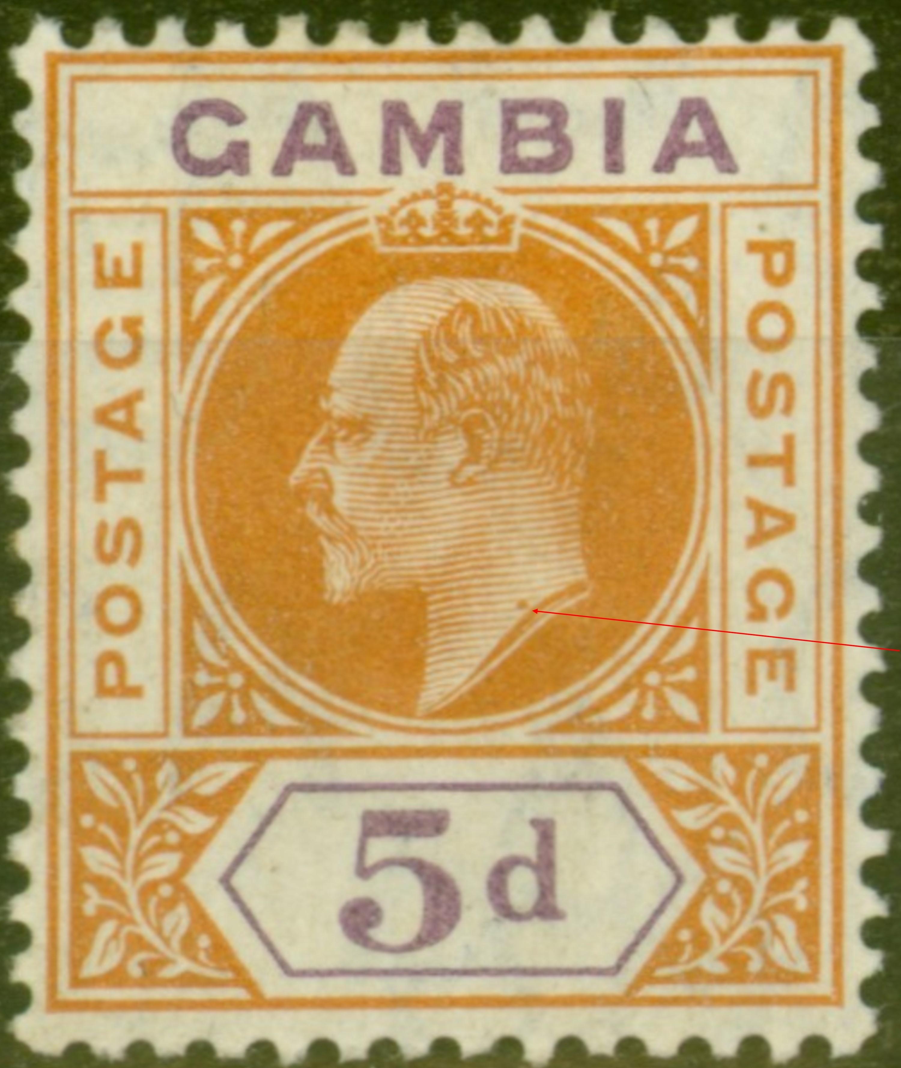 Gambia 1909 5d Orange & Purple SG77var Spot on Neck V.F LMM