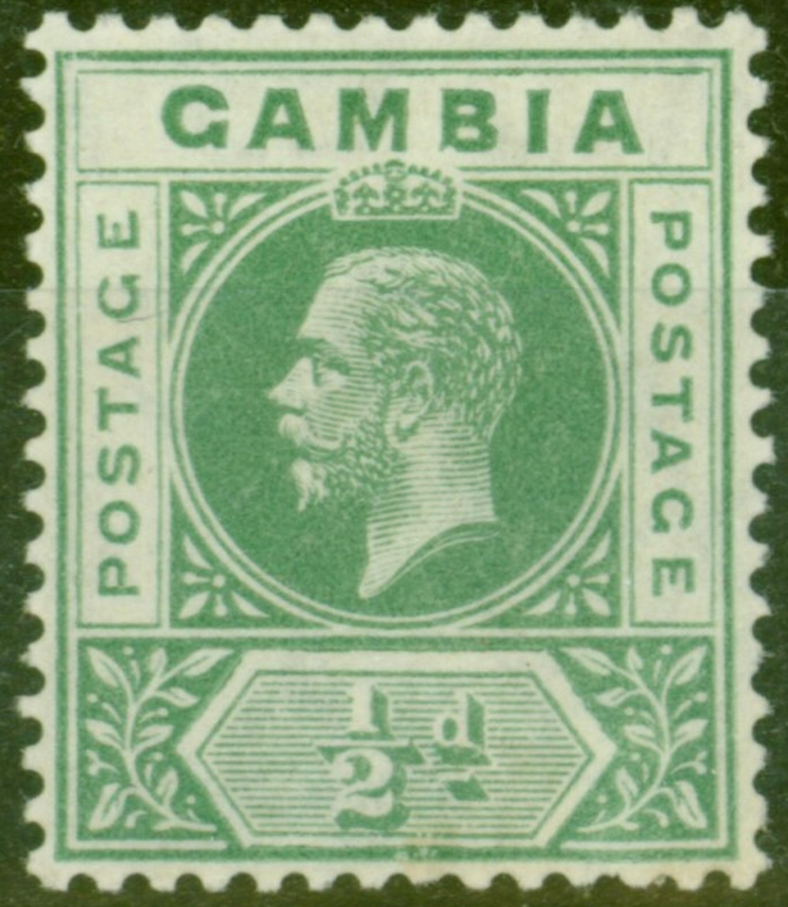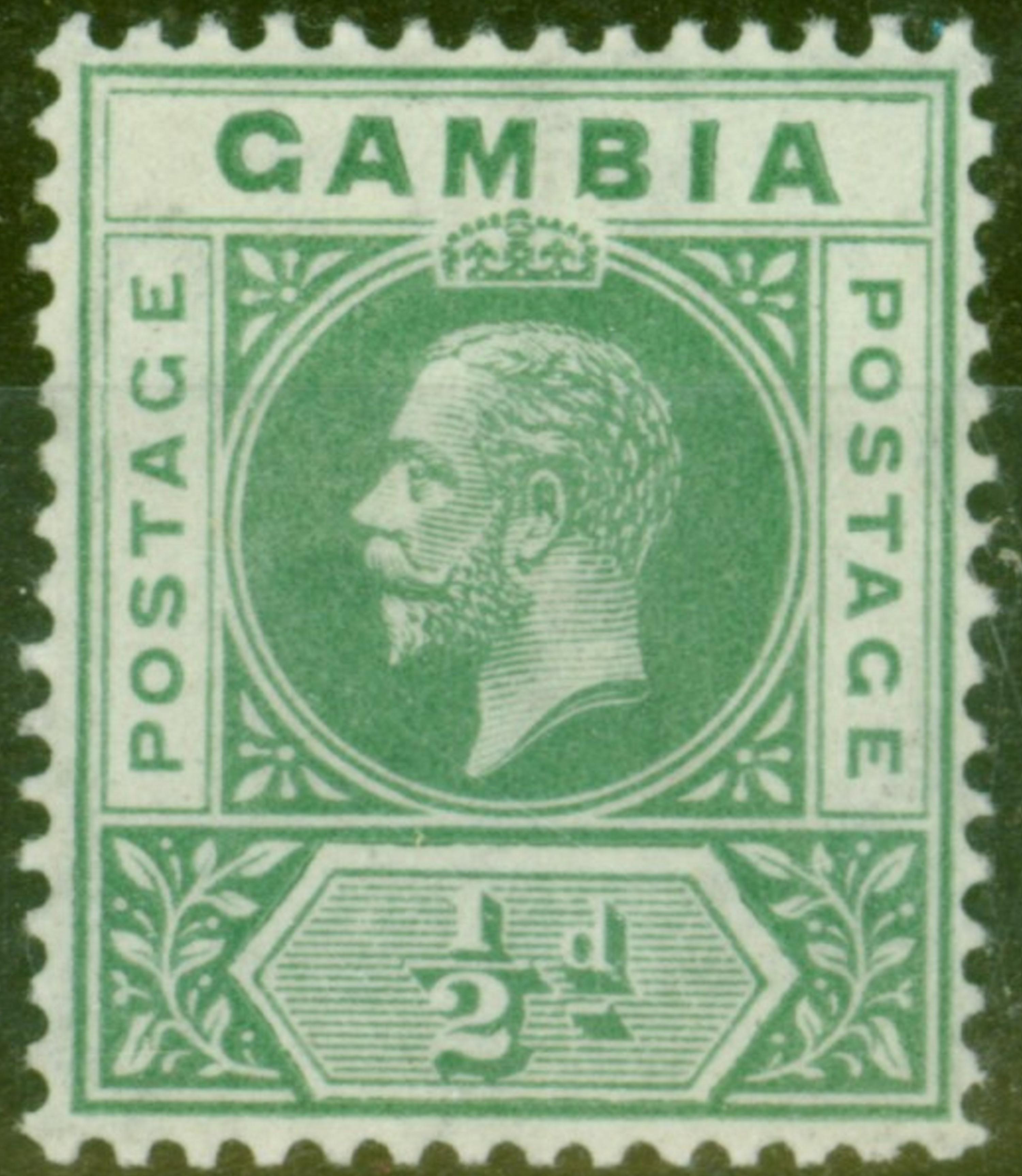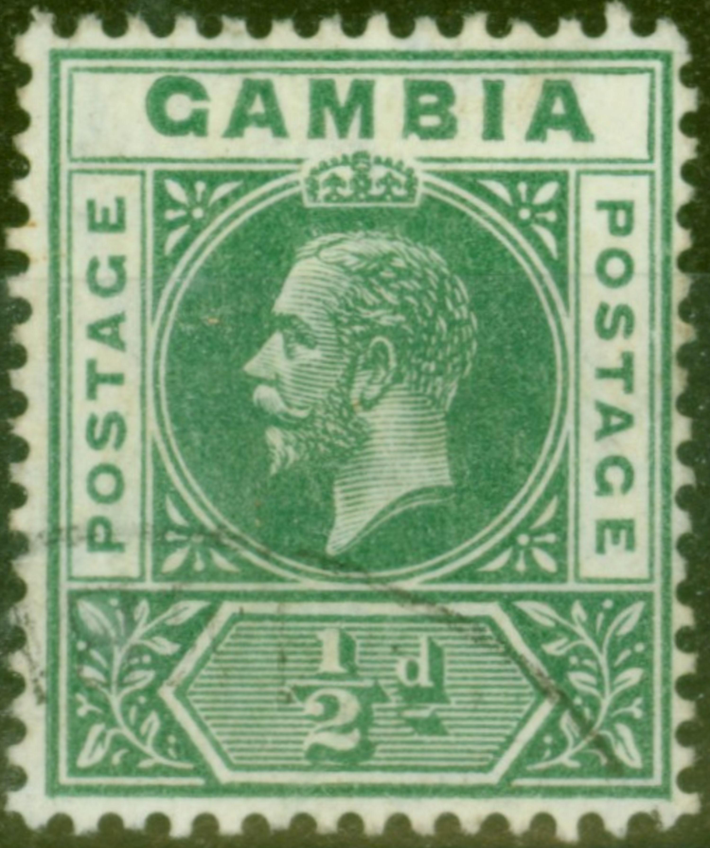 Gambia 1912 1/2d Dp Green SG86var Deformed B in GAMBIA Good LMM