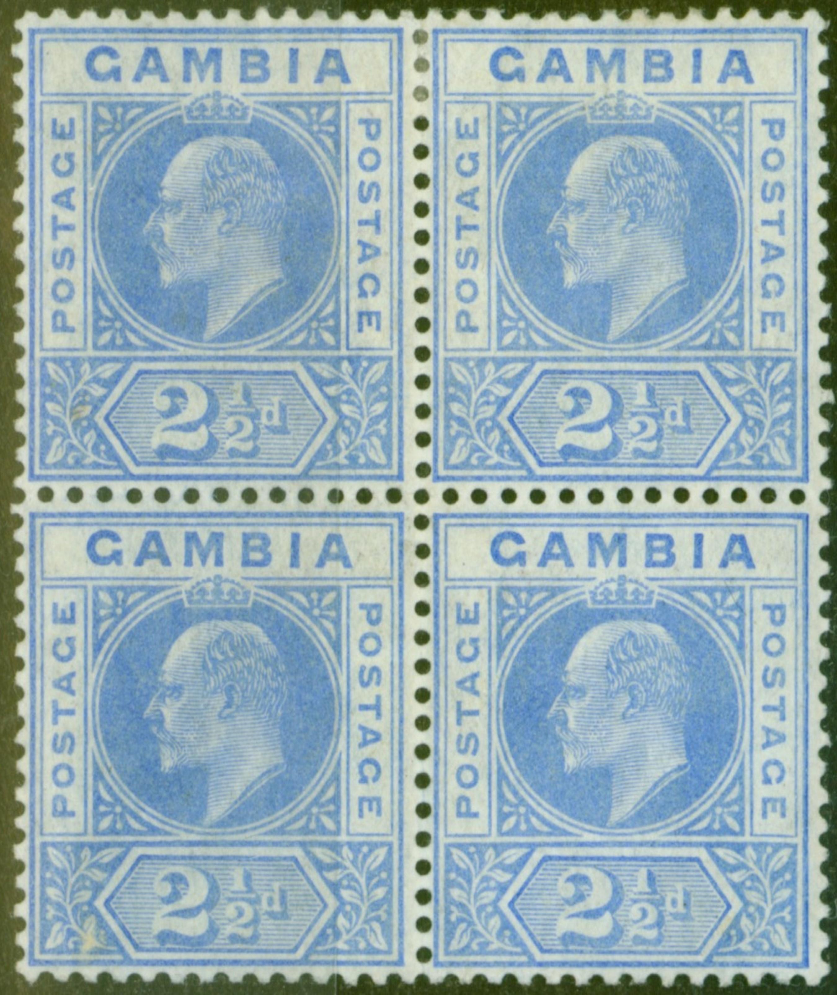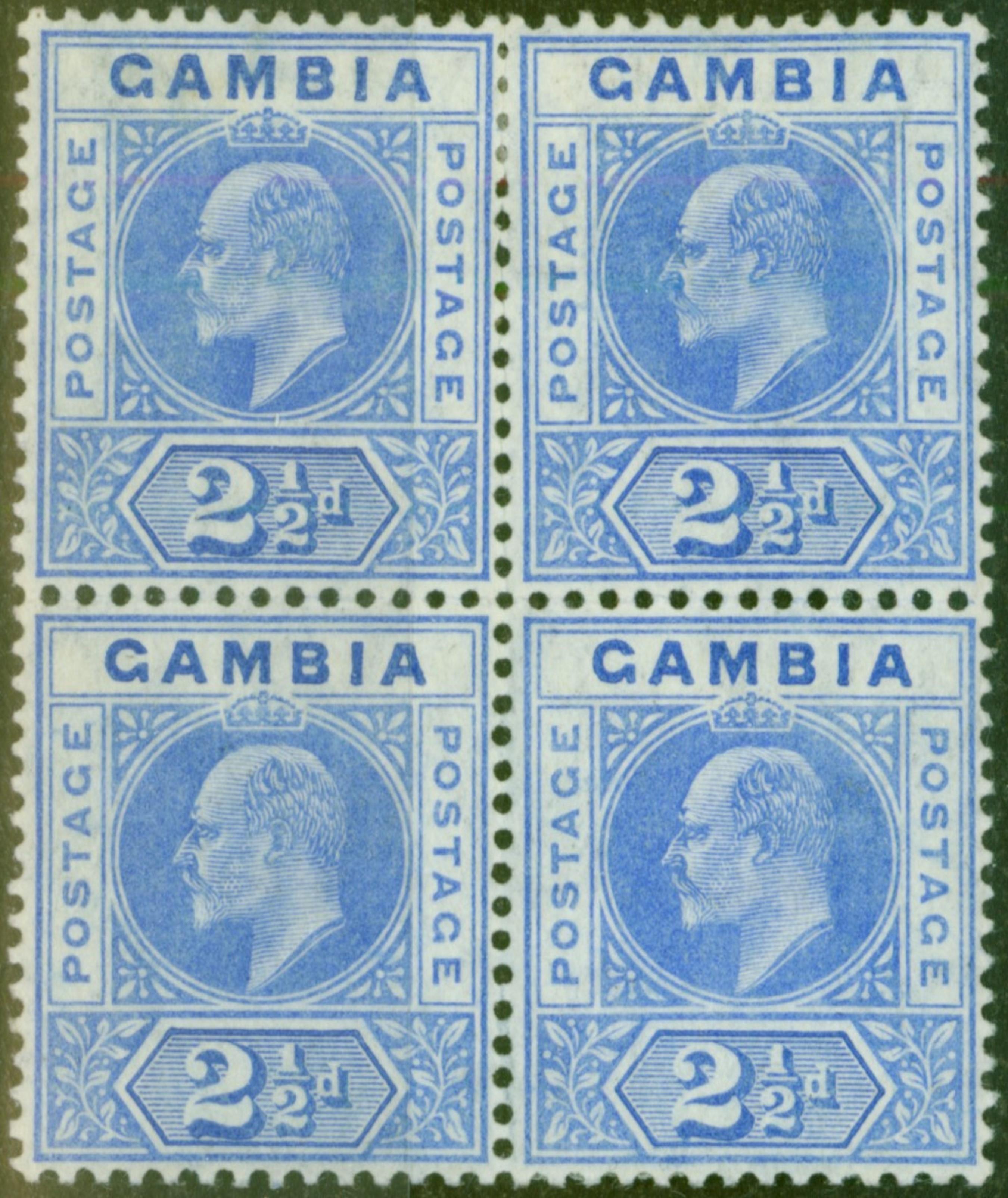 Gambia 1904 2 1/2d Brt Blue & Ultramarine SG60a Fine MM Block of 4
