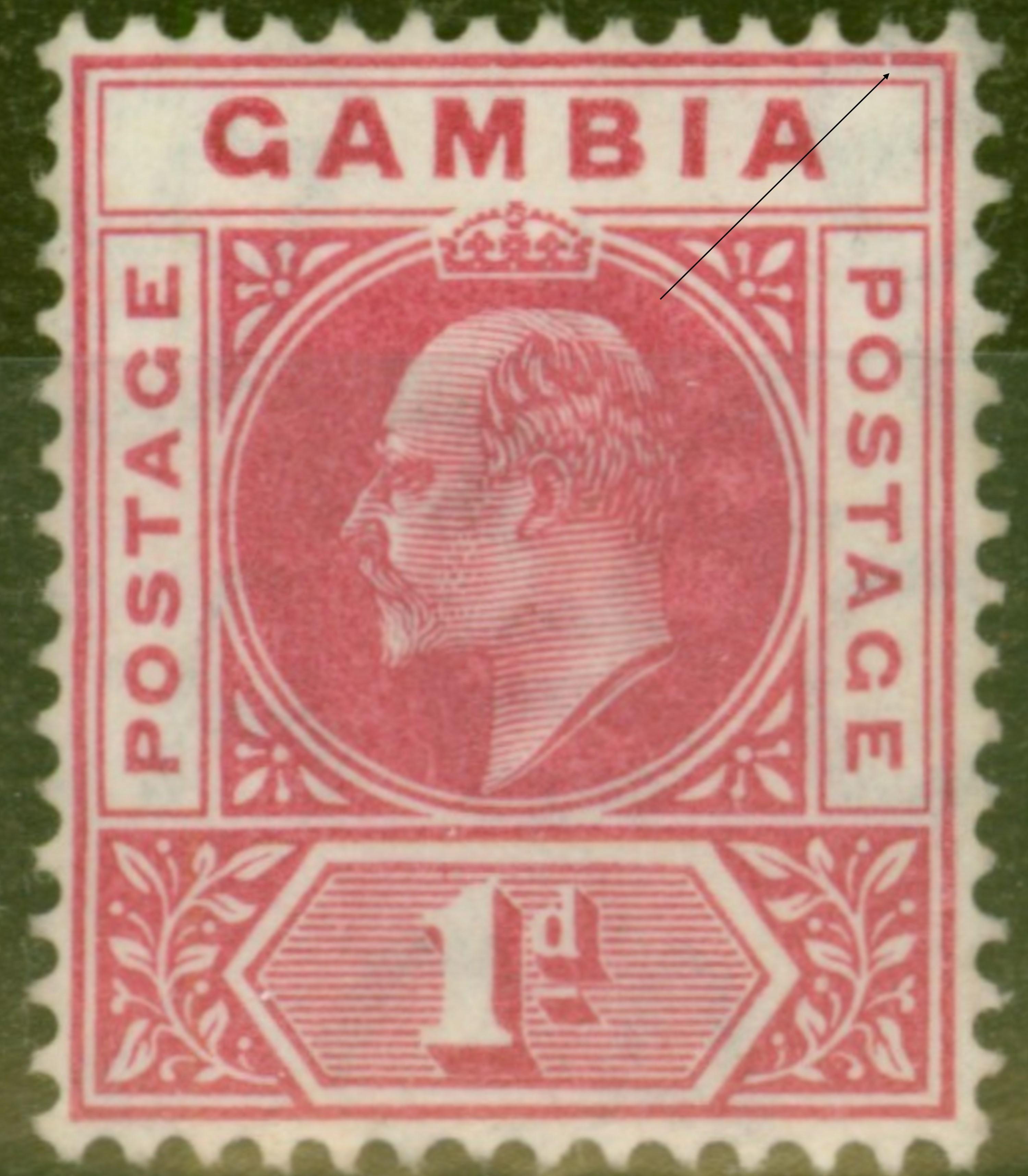 Gambia 1909 1d Red SG73var Slotted Frame Fine MM (2)