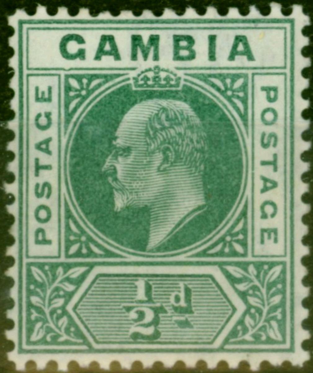 Gambia 1909 1/2d Blue-Green SG72a 'Dented Frame' Fine LMM