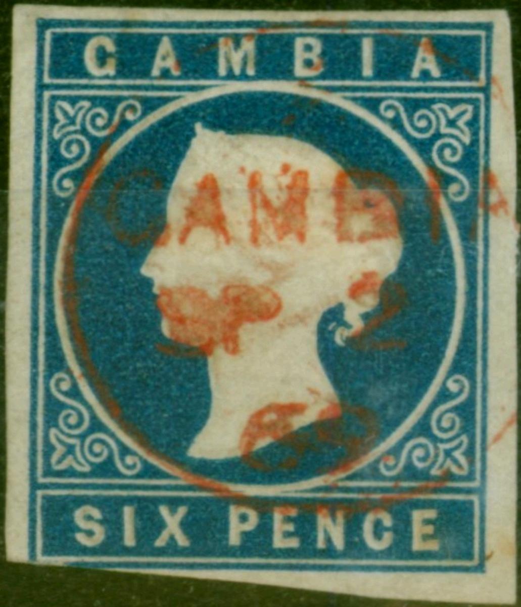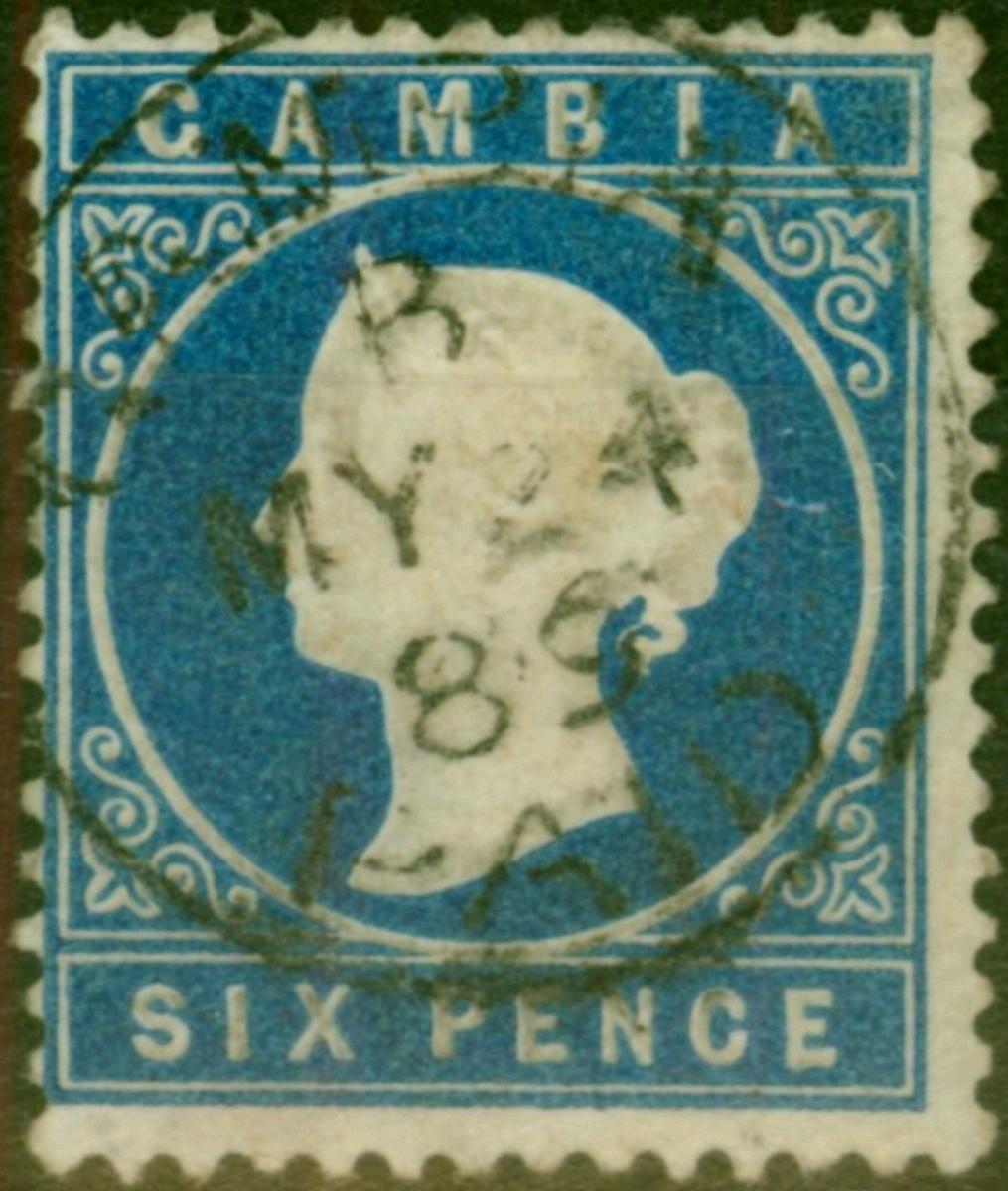 Gambia 1874 6d Blue SG8Var Broken Frame Line at Base Fine Used