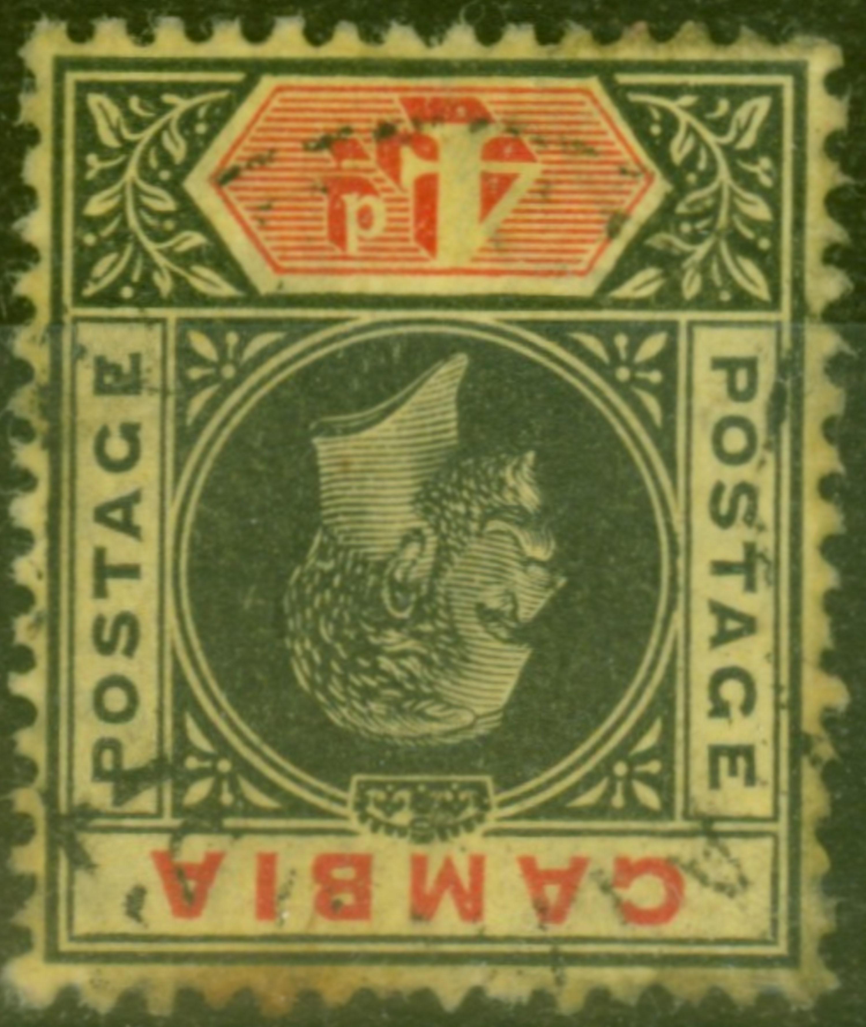 Gambia 1912 4d Black & Red-Yellow SG92w Wmk Inverted Fine Used