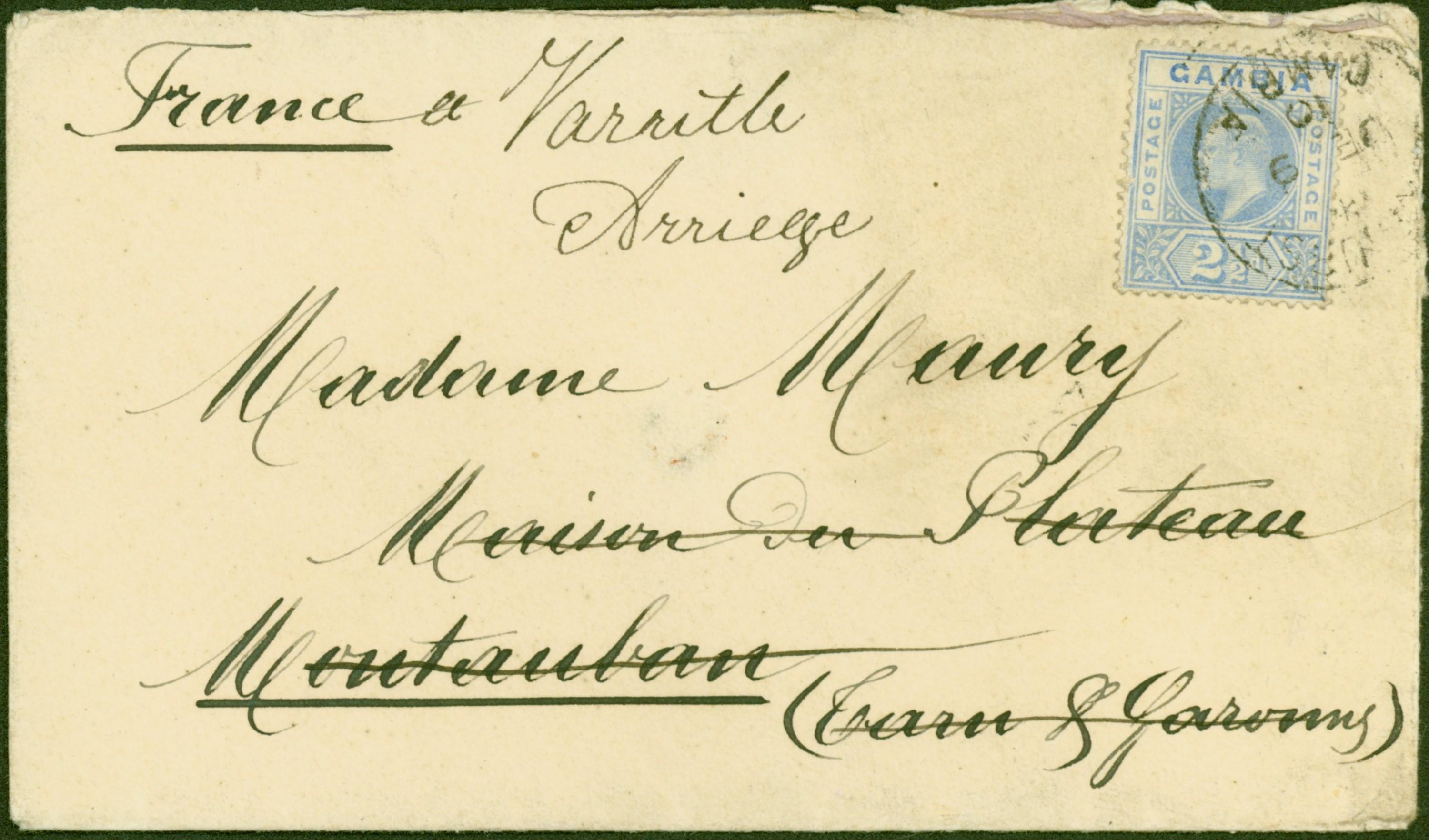 Gambia 1910 Cover to France Bearing 2 1/2d Tarn Et Garonne Receiving Back Stamp Attractive