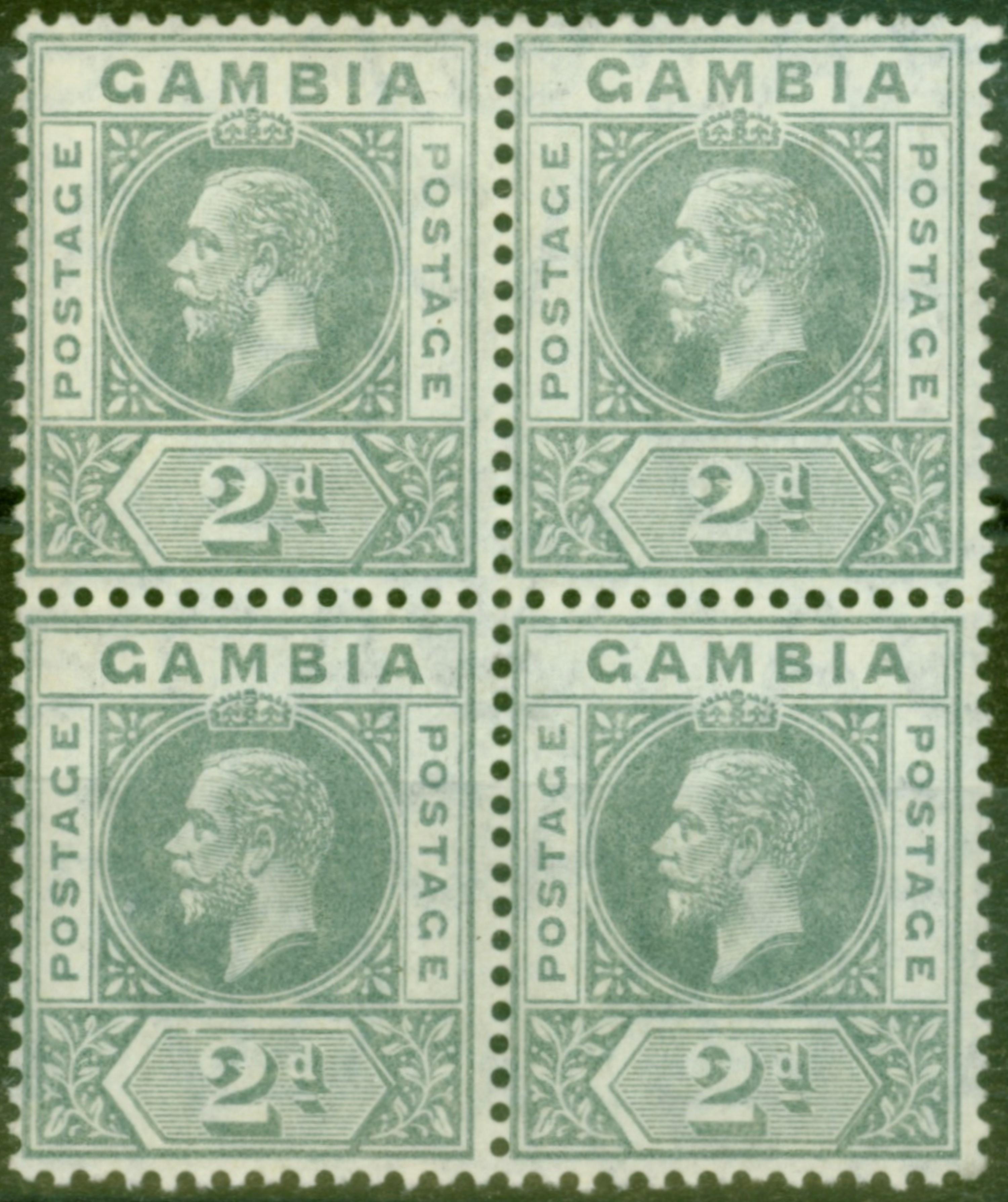 Gambia 1912 2d Greyish Slate SG89var Break in Value Tablet in a V.F VLMM Block of 4