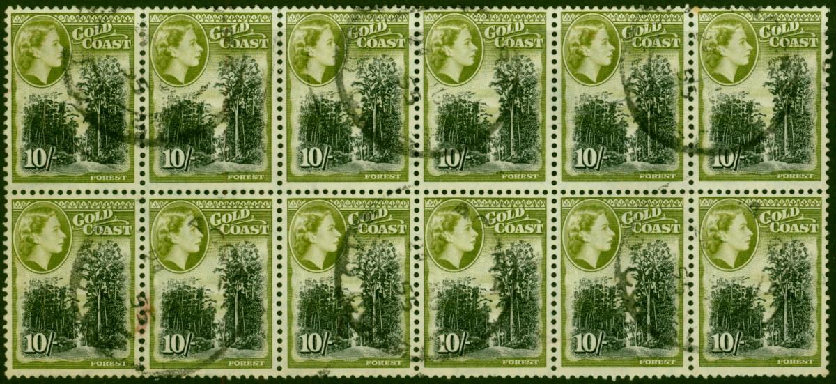 Gold Coast 1954 10s Black & OliveGreen SG164 Fine Used Block of 12