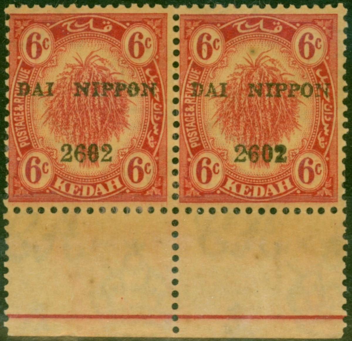 Kedah 1942 Jap Occu 6c CarmineRed SGJ5a Good MNH Pair
