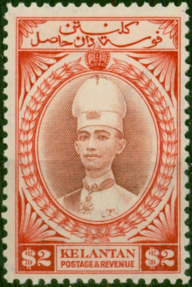 Kelantan 1940 $2 Red-Brown & Scarlet SG53 V.F & Fresh VLMM