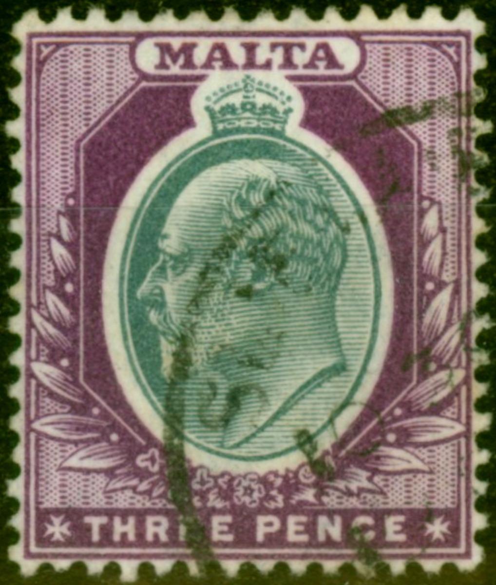 Malta 1903 3d Grey & Purple SG42Var 'Broken Crown' Fine Used