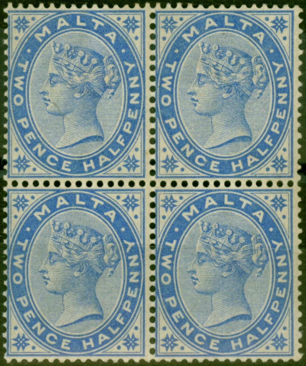 Malta 1885 2 1/2d Dull Blue SG24 Good MM & MNH Block of 4 Toned Gum