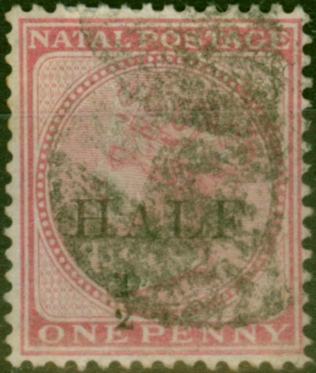 Natal 1877 1/2d on 1d Rose SG88 Type D Fine Used