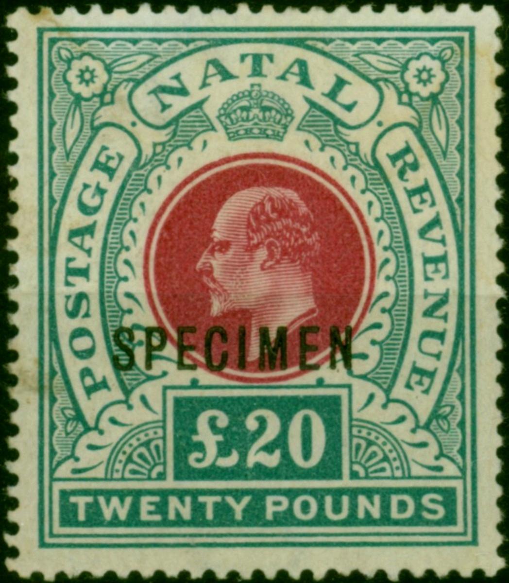 Natal 1902 £20 Red & Green Specimen SG145bs Fine MM