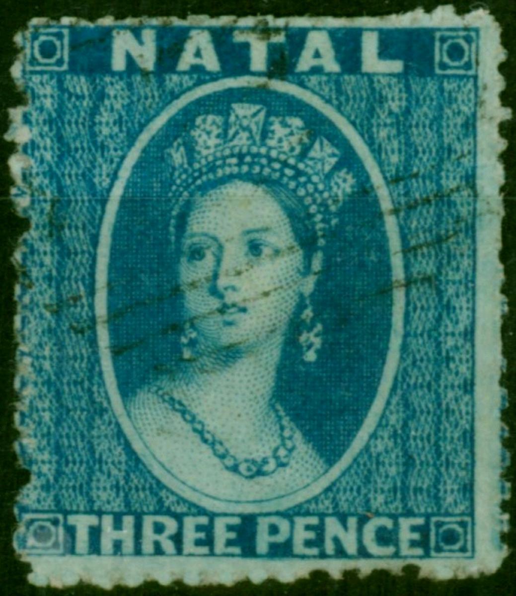 Natal 1870 3d Bright Blue SG61x Wmk Reversed Fine Used