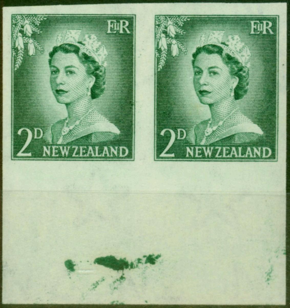New Zealand 1956 2d Bluish Green SG747 V.F MNH Imperf Proof Pair on Gummed Wmk Paper