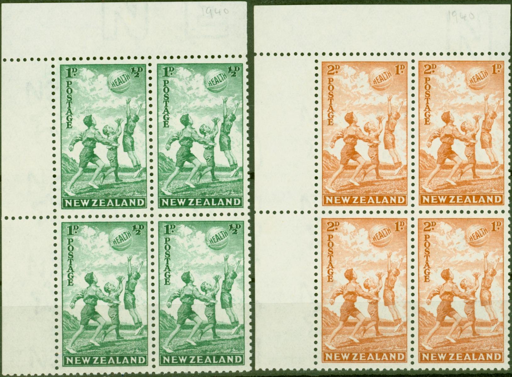 New Zealand 1940 Health Stamps set of 2 SG628-629 in Superb MNH Corner Blocks of 4