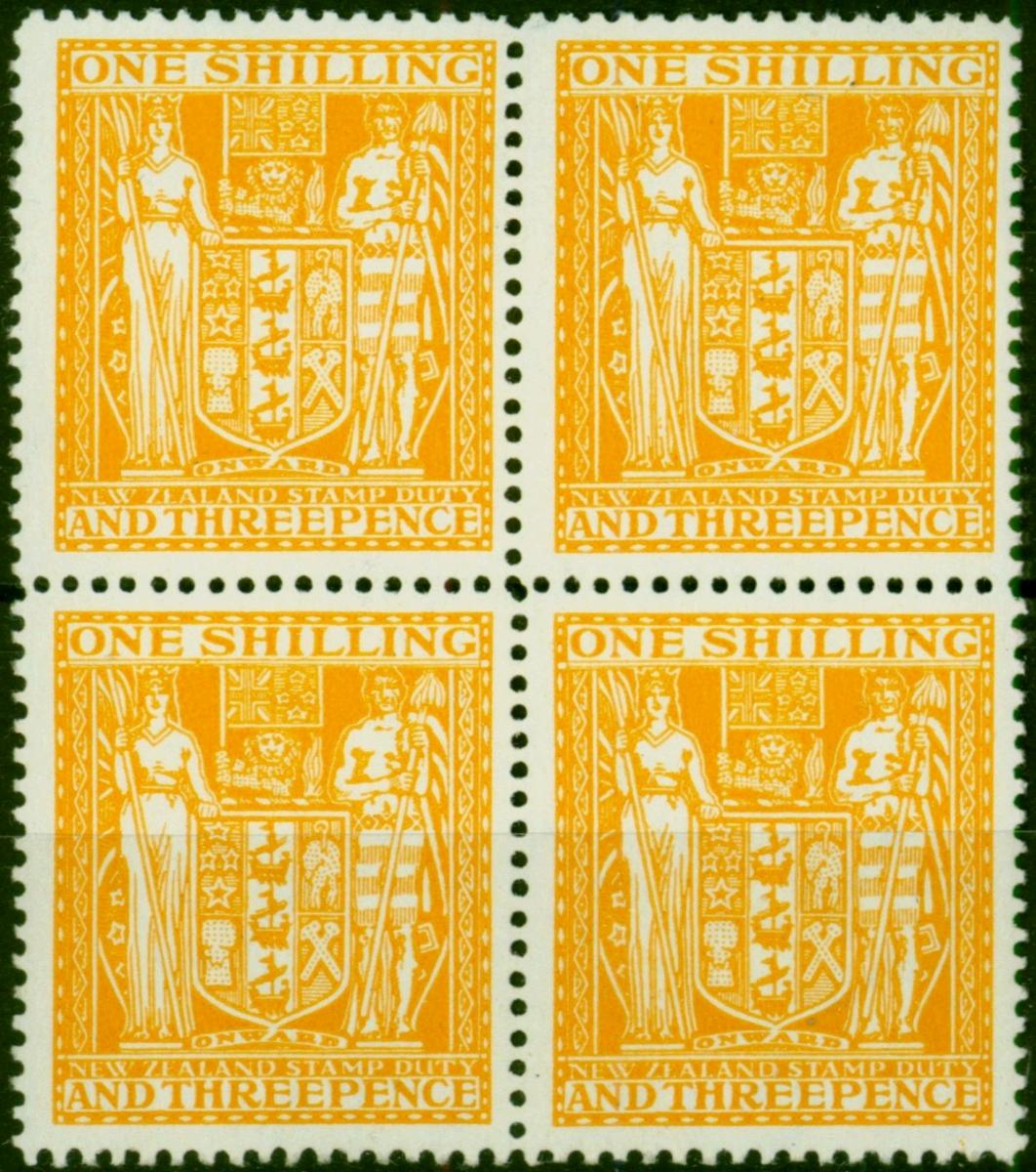 New Zealand 1956 1s3d Yellow-Black SGF217w Wmk Inverted V.F MNH Block of 4