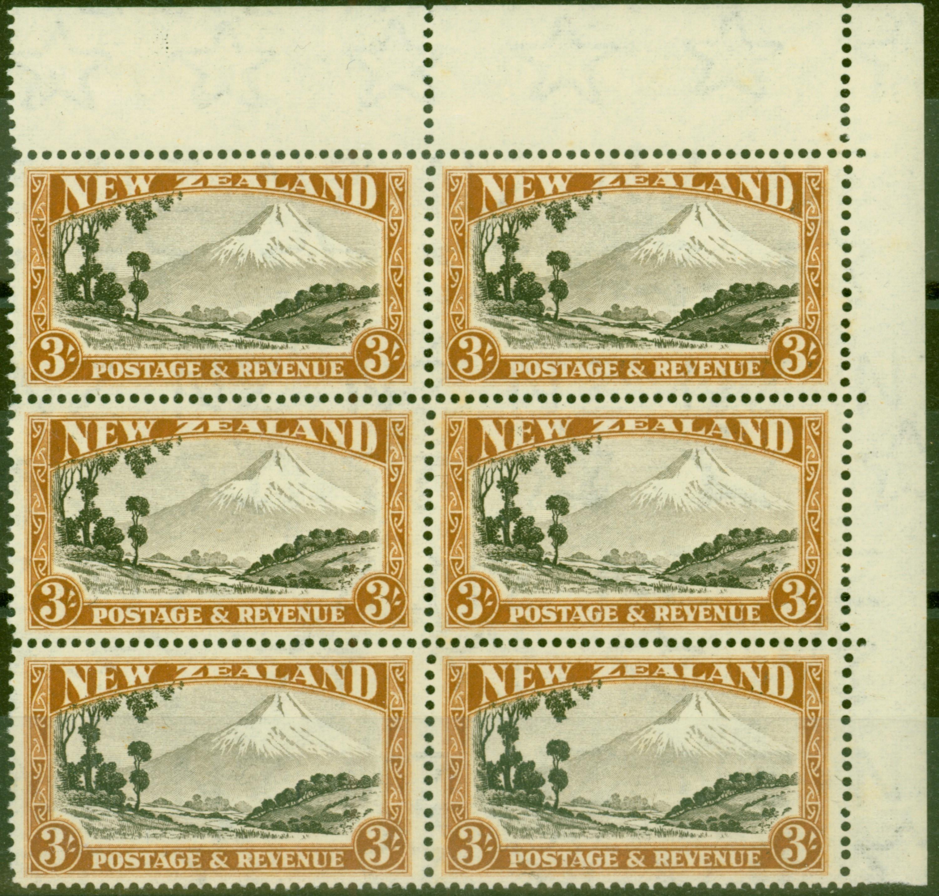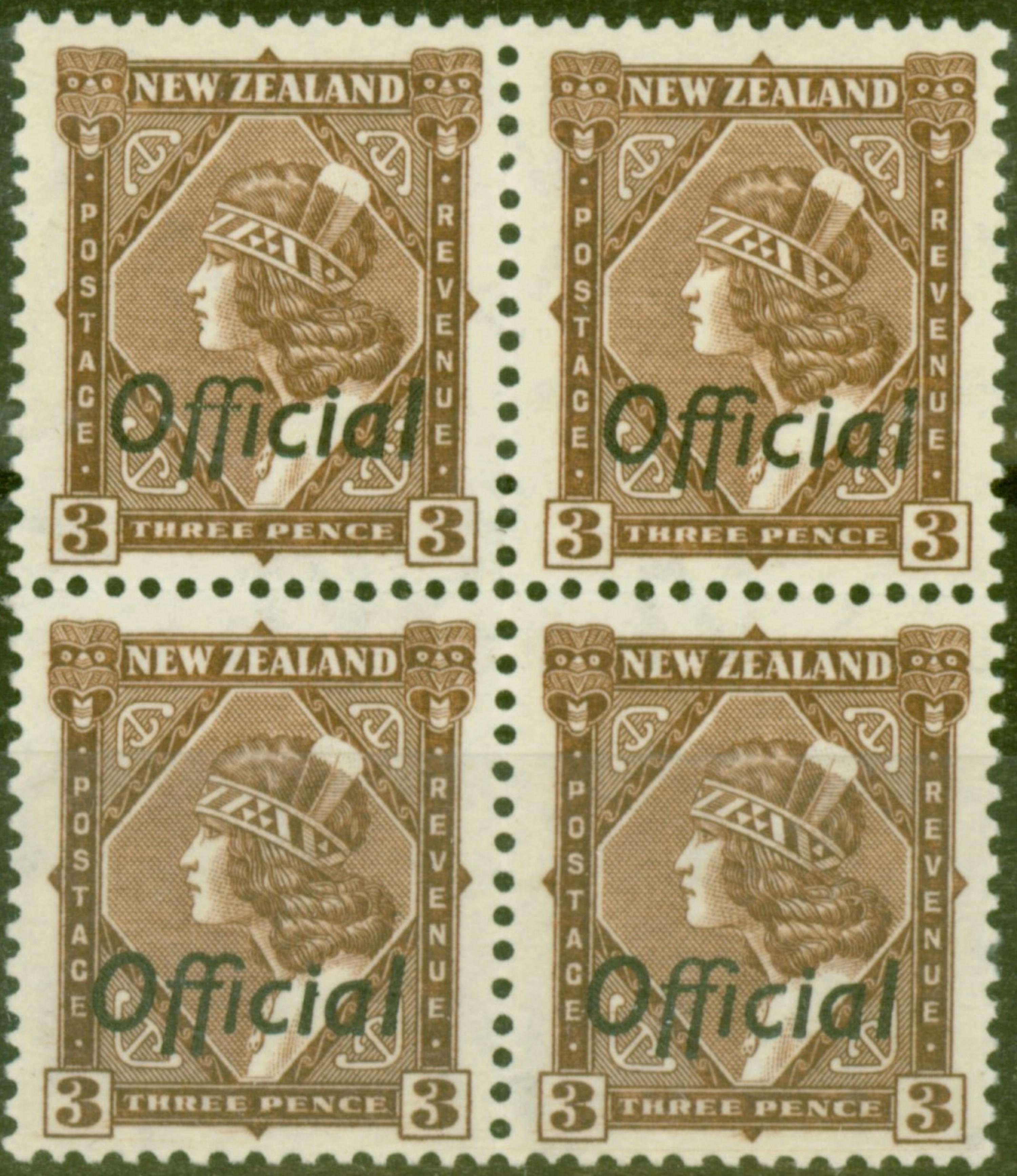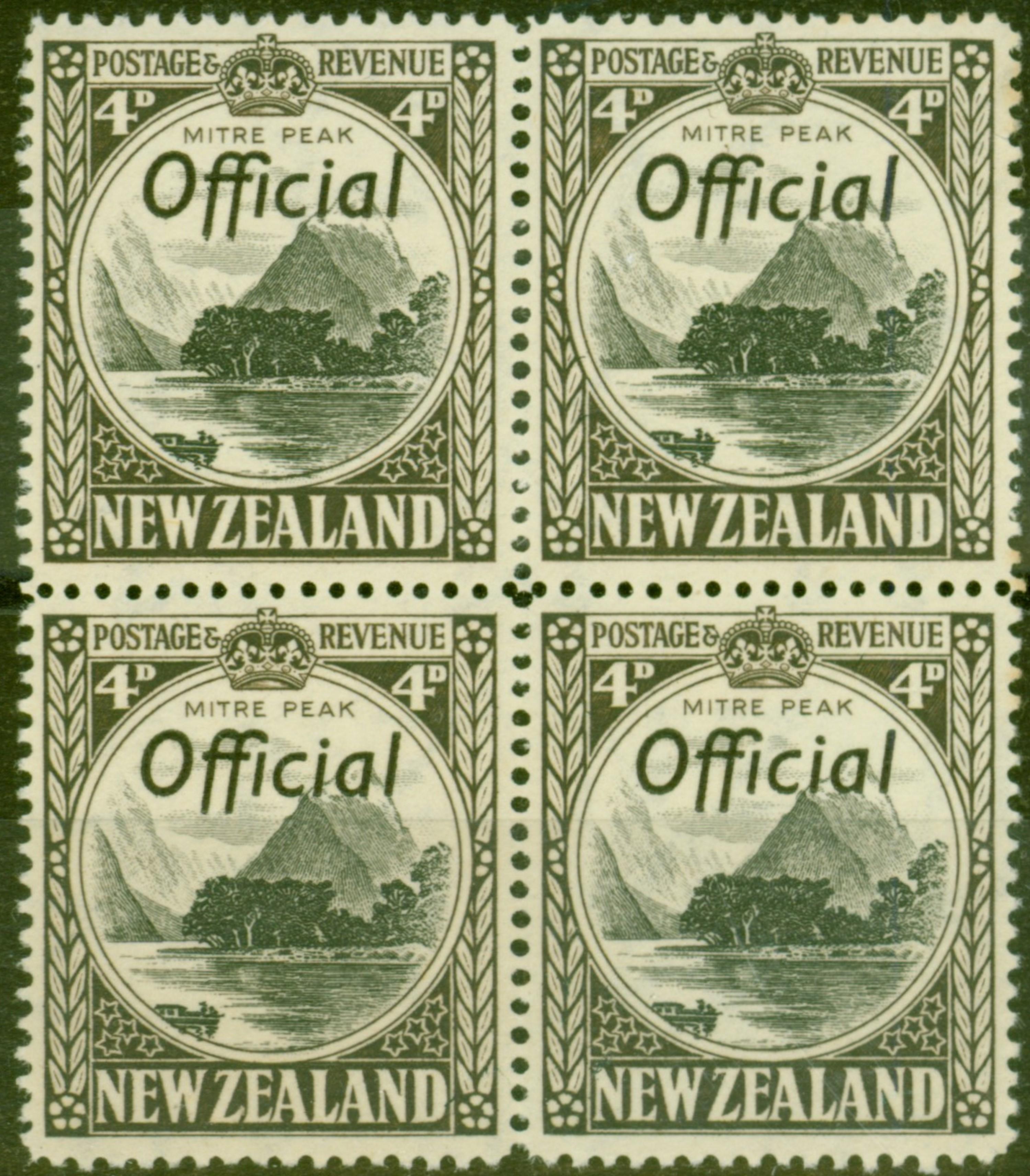 New Zealand 1953 3/6 on 3s6d GreyGreen SGF213 Fine MNH Block of 4
