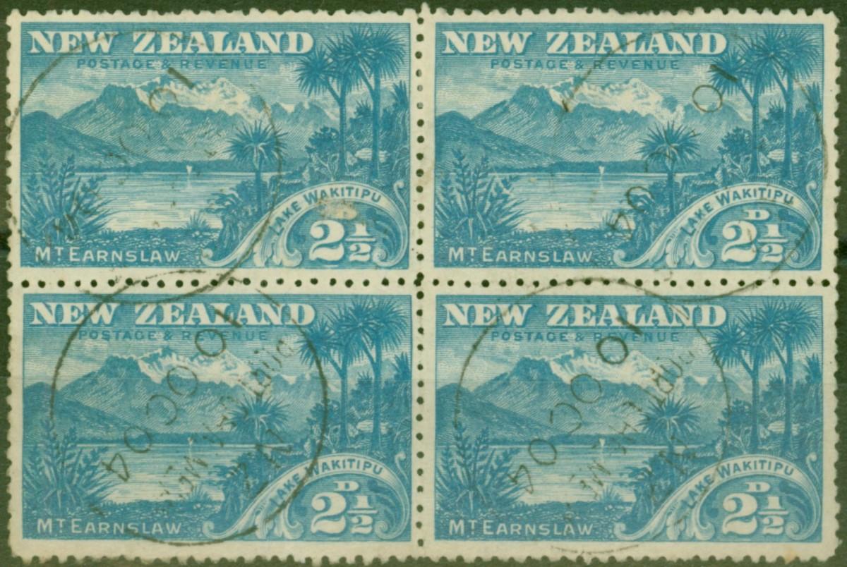New Zealand 1898 2 1/2d Blue SG249a V.F.U Block of 4 'Port Chalmers 10 OC 04' CDS