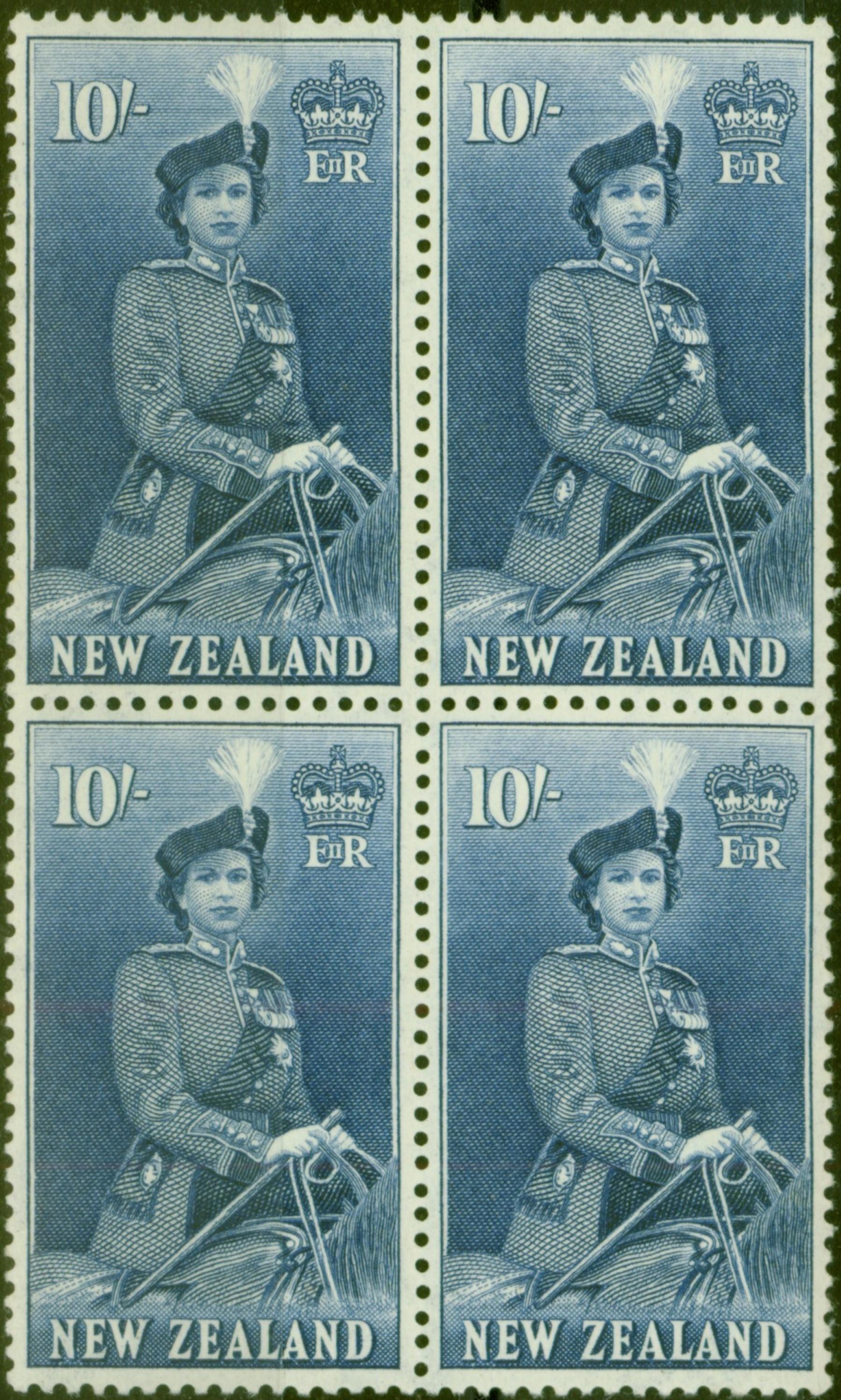 New Zealand 1953 3/6 on 3s6d GreyGreen SGF213w Good MNH Block of 4