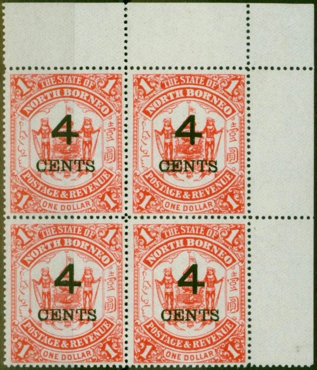 North Borneo 1895 4c on $1 Scarlet SG87 V.F MNH Corner Block of 4 (3)