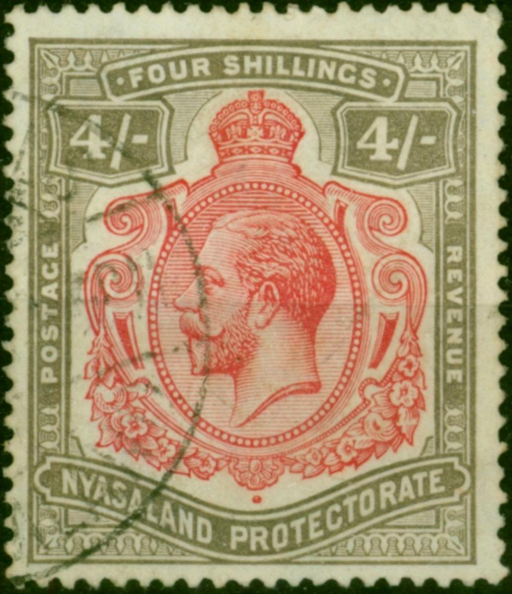Nyasaland 1927 4s Carmine & Black SG111f 'Damaged Leaf Bottom Right' Good Used