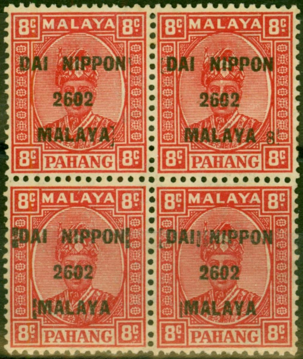 Pahang 1942 Jap Occu 8c Scarlet SGJ241Var LMM & MNH Block of 4