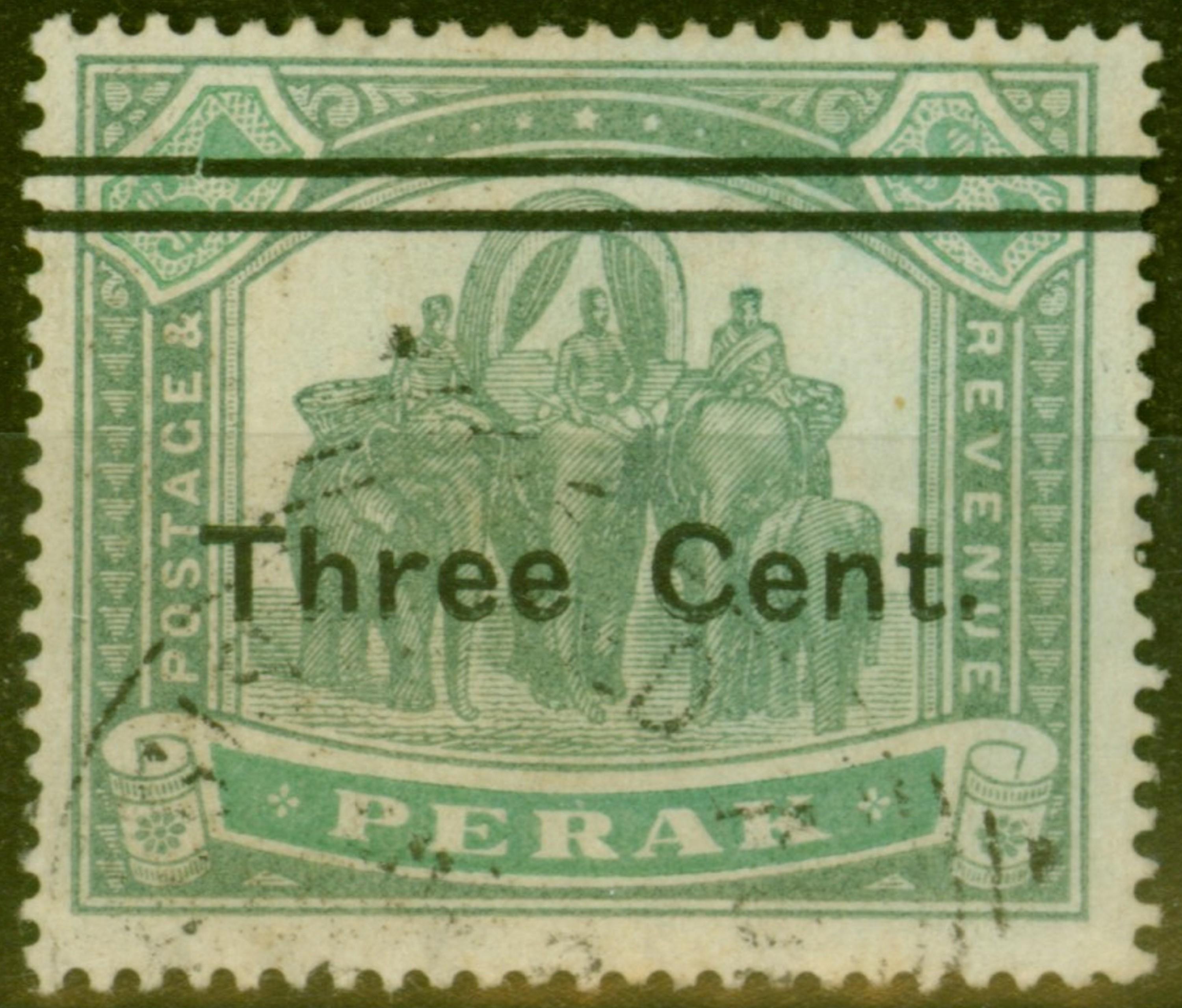Perak 1900 3c on $1 Green & Pale Green SG86var Broken Upper Bar at Left Fine Used