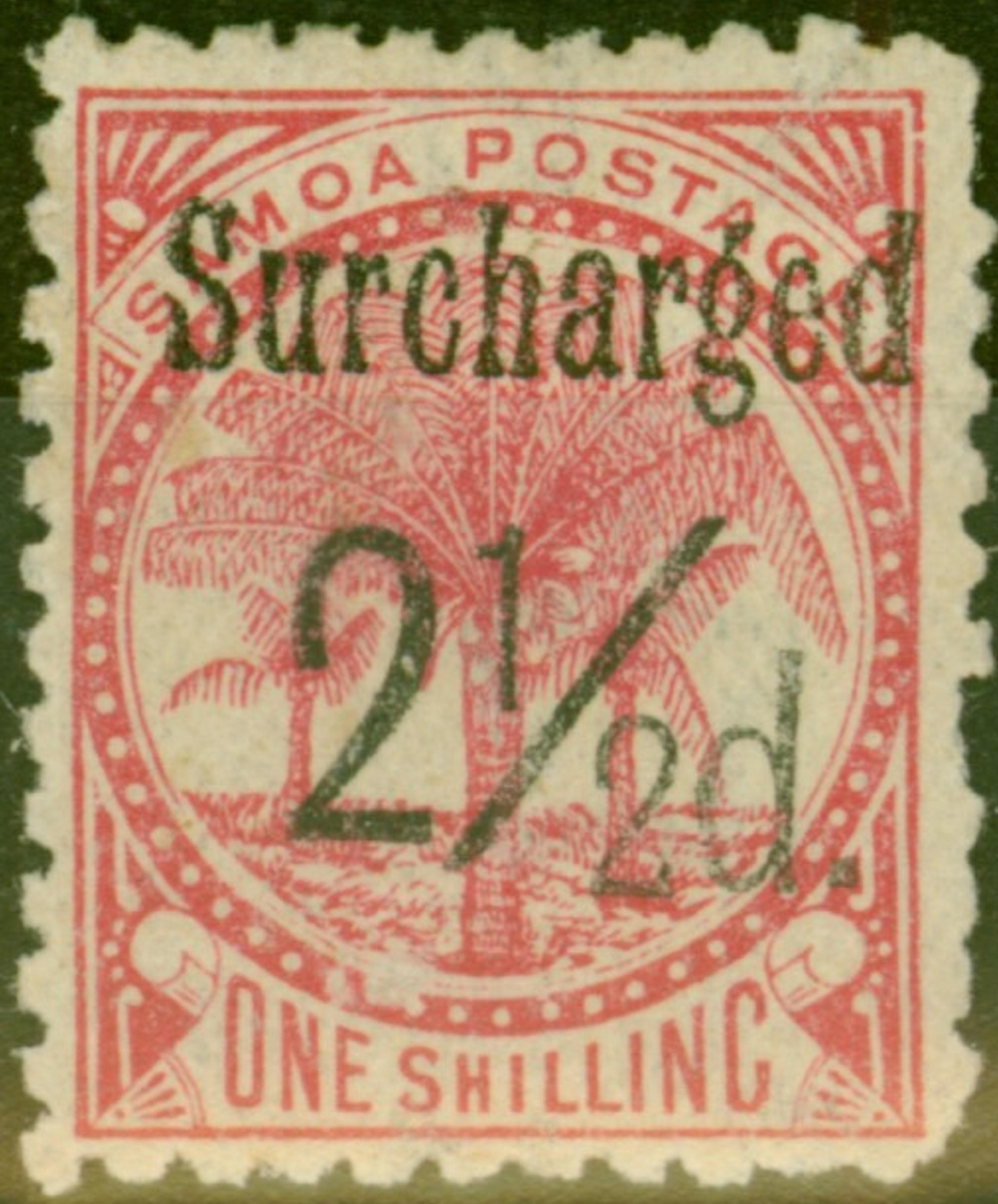 Samoa 1898 2 1/2d on 1s Dull RoseCarmine SG86 Fine MM (2)
