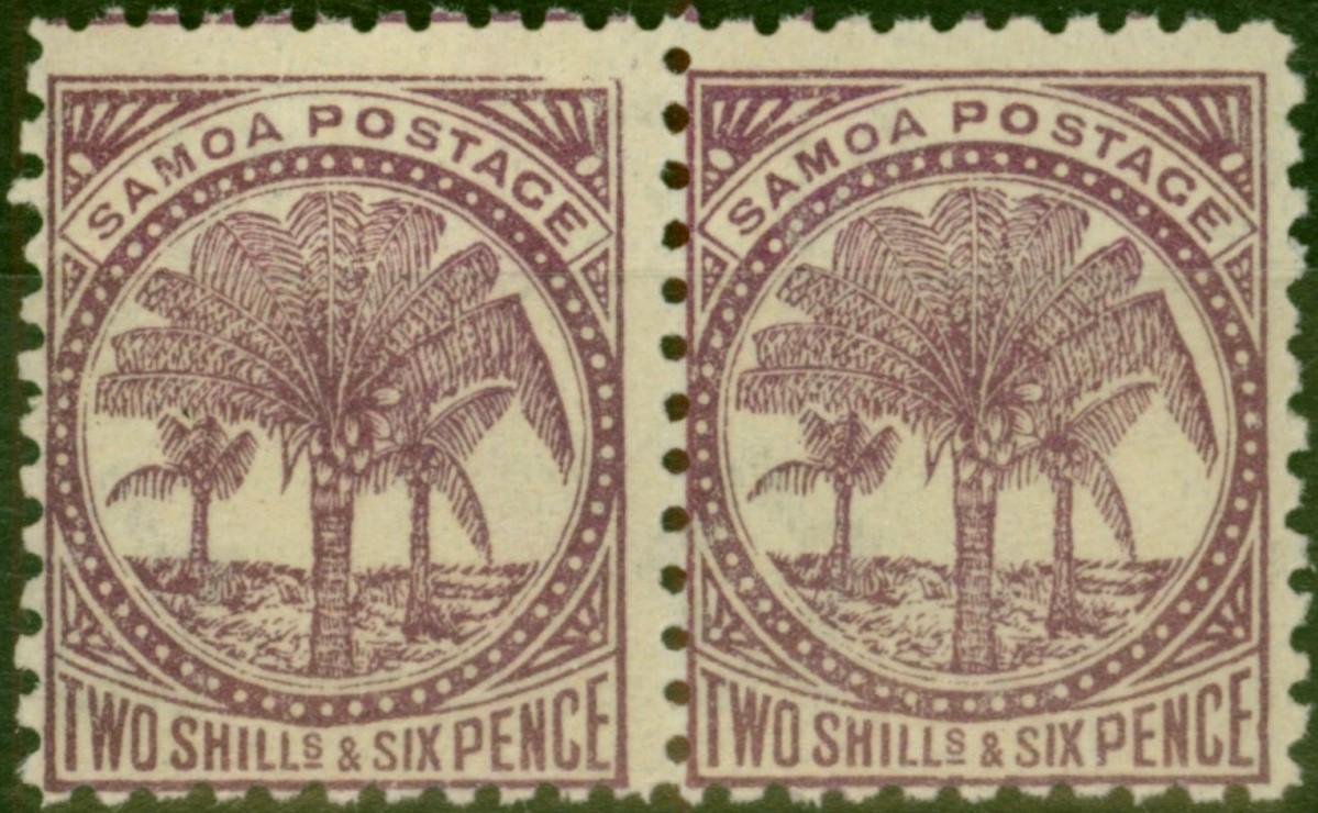 Samoa 1914 6d on 50pf Black & Purple-Buff SG108b 'Inverted 9 for 6' V.F MNH in Pair with Normal