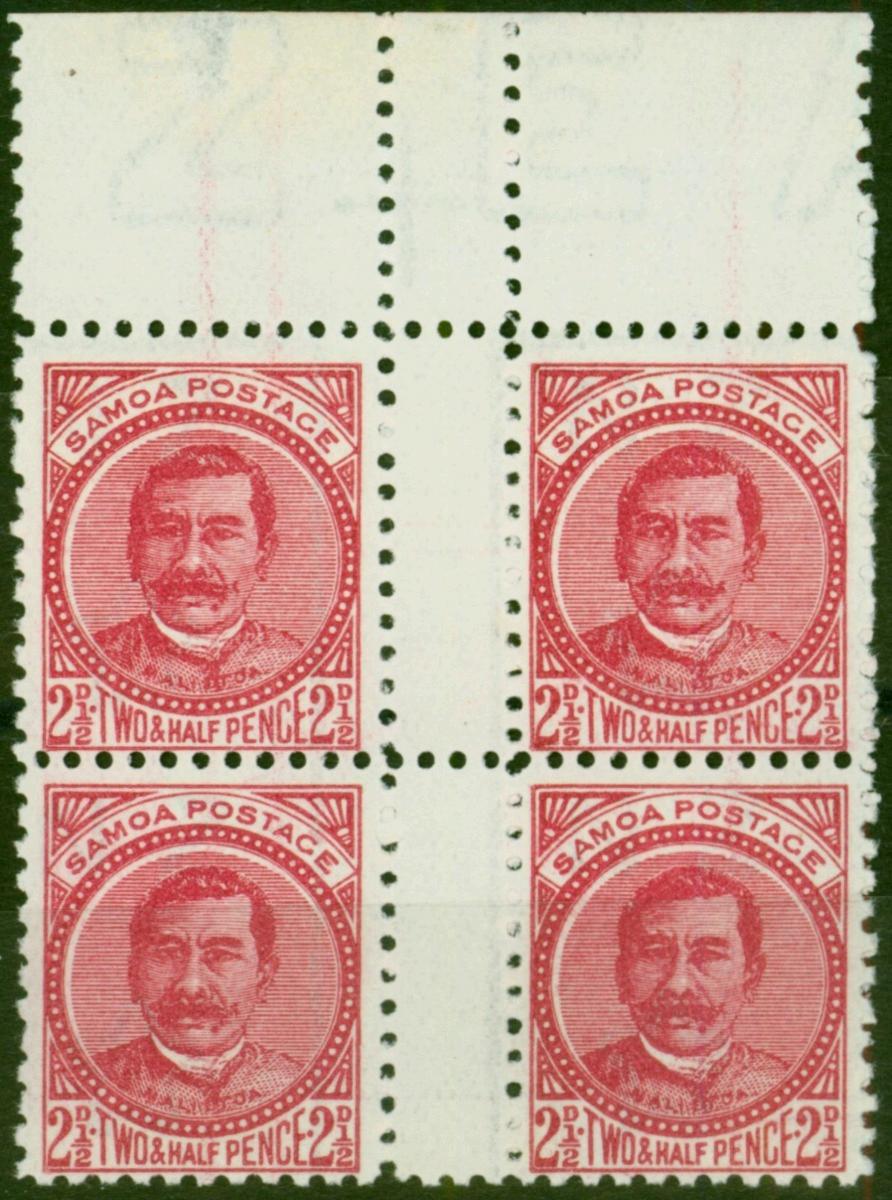 Samoa 1900 2 1/2d Deep RoseCarmine SG60a Good MNH Block of 4