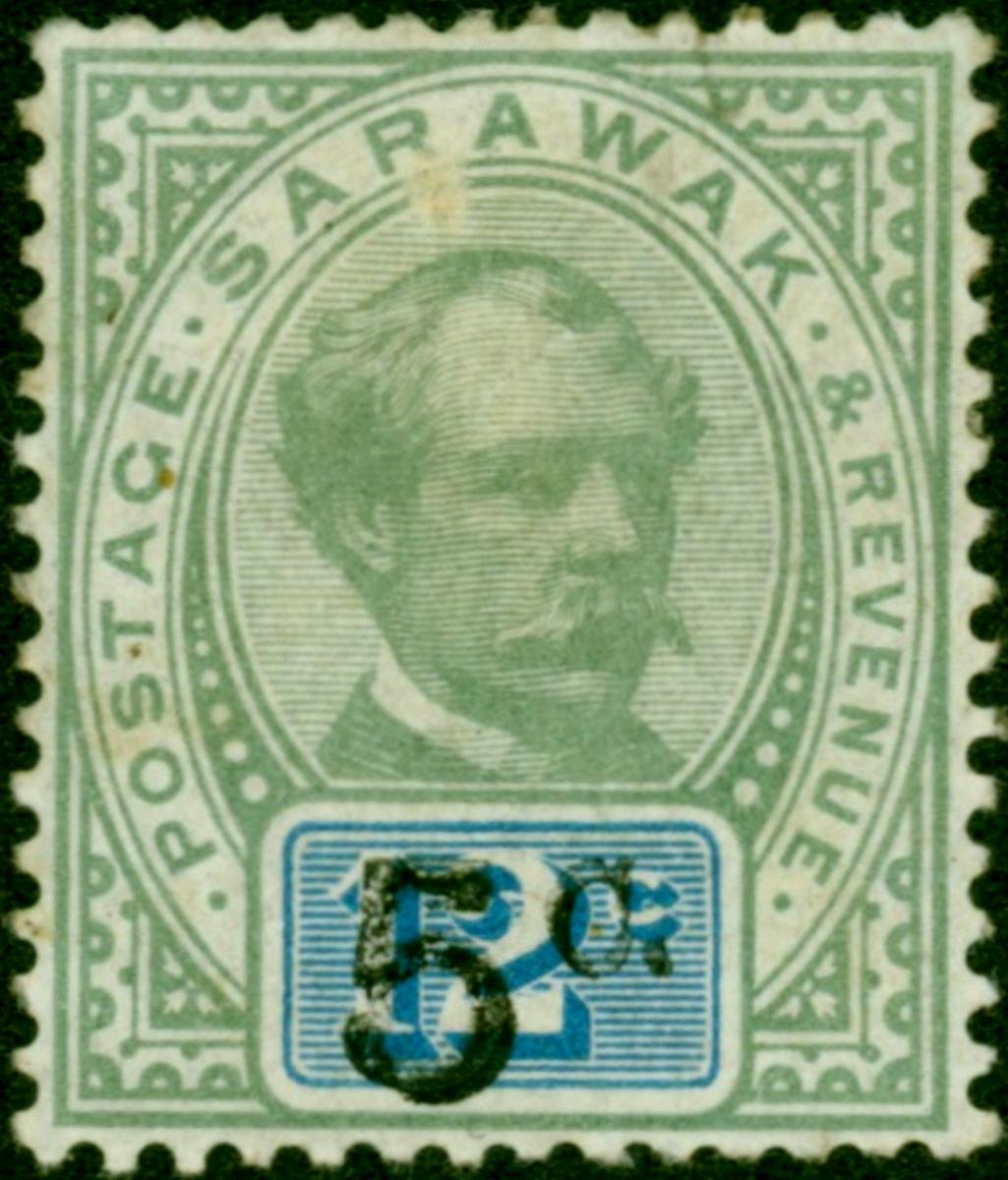 Sarawak 1891 5c on 12c Green & Blue SG25c 'Surcharge Double' Good MM